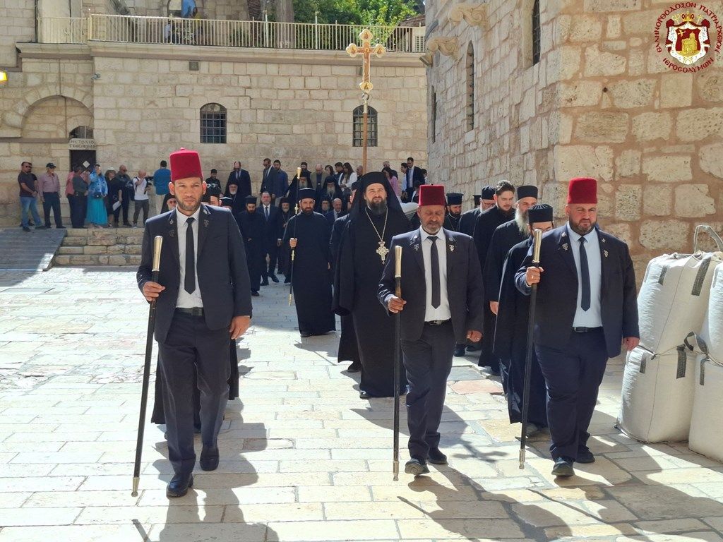 Πρός τοῦτο ἡ Μετριότης Ἡμῶν, συνοδευομένη ὑπό τῶν τιμίων μελῶν, Ἀρχιερέων, Ἱερέων, μοναχῶν τῆς Γεραρᾶς Ἁγιοταφιτικῆς ἡμῶν Ἀδελφότητος ὡς καί εὐσεβοῦς λαοῦ, κατήλθομεν ἐν τῷ Πανιέρῳ Ναῷ τῆς Ἀναστάσεως, ἔνθα ἀνεπέμψαμεν εὐχαριστήριον Δοξολογίαν τῷ Ἁγίῳ Τριαδικῷ Θεῷ, «τῷ διδόντι ἡμῖν τό νῖκος διά τοῦ Κυρίου ἡμῶν Ἰησοῦ Χριστοῦ», (Α΄ Κορ. 15,57).