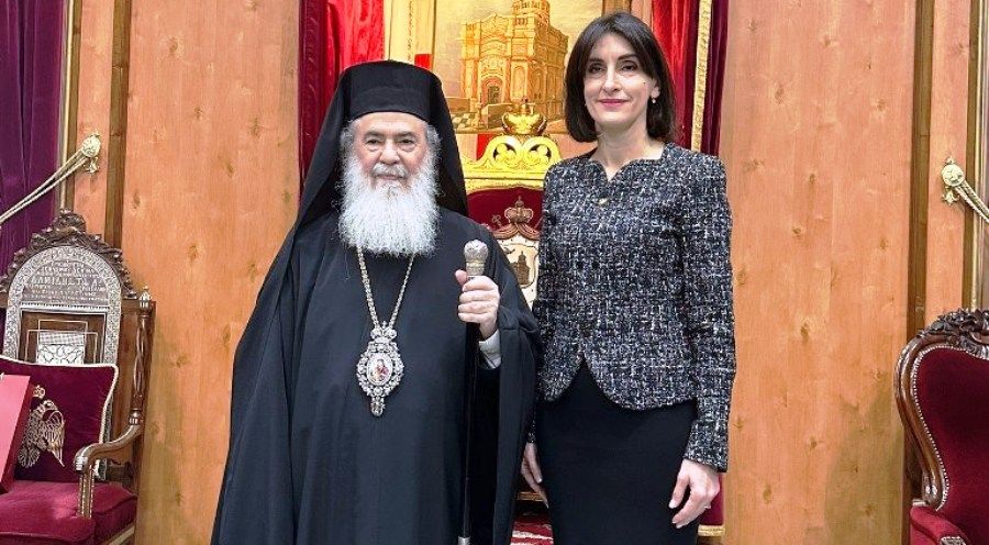 Ὁ Μακαριώτατος Πατριάρχης Ἱεροσολύμων κ.κ. Θεόφιλος Γ΄, ὑπεδέχθη σήμερον, εἰς τό Ἑλληνορθόδοξον Πατριαρχεῖον Ἱεροσολύμων, τὴν Ὑπουργὸν Ἐξωτερικῶν τῆς Γεωργίας, κ. Maca Botchorisvili, μετά τῶν συνοδευόντων αὐτήν ἀντιπροσώπων διπλωματῶν καί ἀξιωματούχων, ἐν πνεύματι Χριστιανικῆς κοινωνίας καὶ εὐγνωμοσύνης πρὸς τὸν Κύριον. Ὁ Μακαριώτατος ἐδέχθη ἐνθέρμως τήν συνοδείαν αὐτῆς, τονίζων ὅτι ἡ ἐπίσκεψις αὐτῶν λαμβάνει χώραν εἰς μίαν χρονικήν στιγμήν, κατά τήν ὁποίαν ἡ περιοχὴ ἡμῶν ποθεῖ τὴν εἰρήνην, ὑπενθυμίζων τούς λόγους τοῦ Ἀποστόλου: «οὐ γὰρ ἐστιν ὁ Θεὸς ἀκαταστασίας, ἀλλ’ εἰρήνης», (Α΄ Κορ. 14,33).