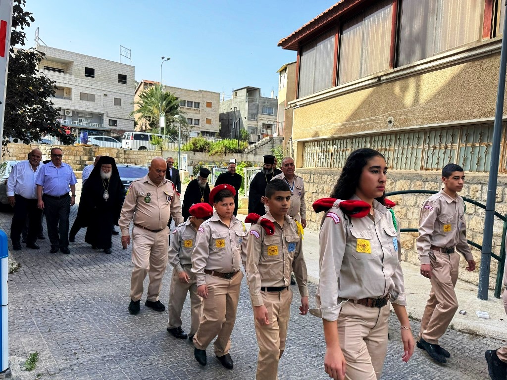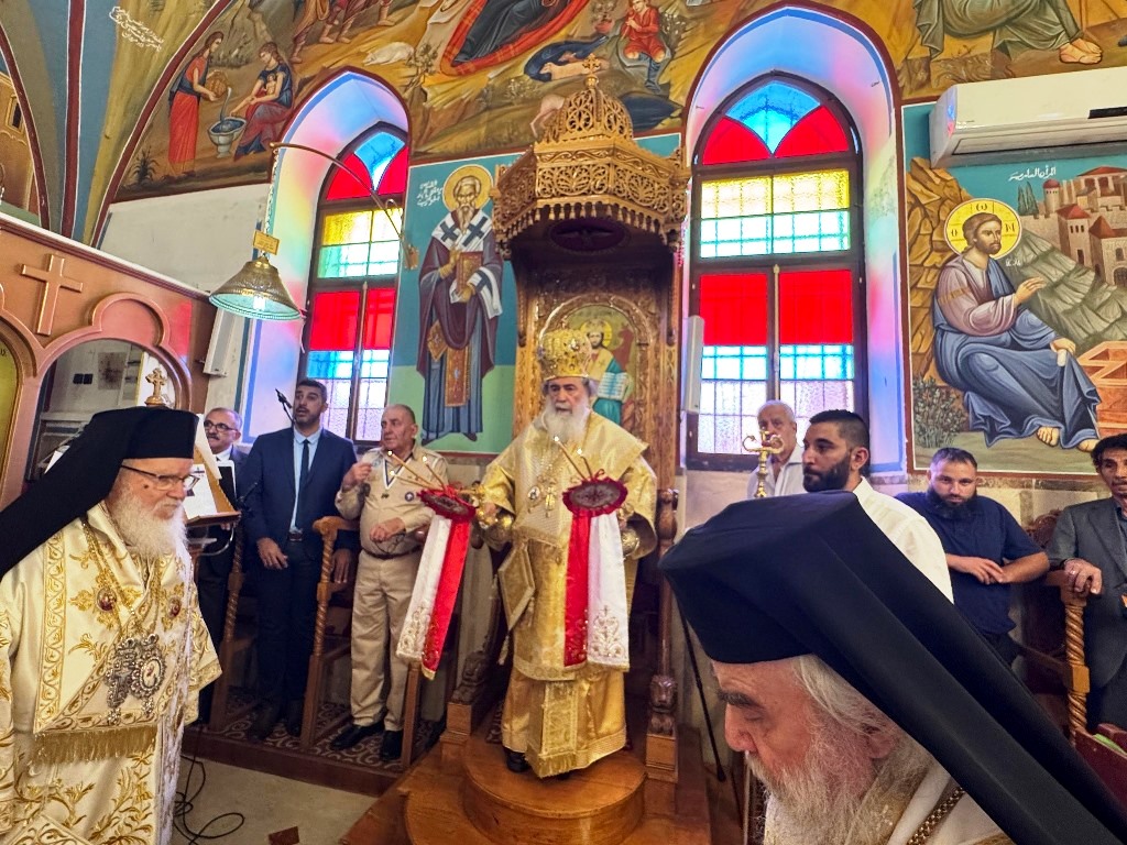 Ἐνταῦθα ὁ Μακαριώτατος ἐγένετο δεκτός ἐν θερμῇ ὑποδοχῇ ὑπό τοῦ Σώματος τῶν Ὀρθοδόξων Προσκόπων, ἀκολούθως δέ ἐτέλεσε τό Μυστήριον τῆς θείας Εὐχαριστίας εἰς τόν περικαλλῆ Ἱερόν Ναόν Ἁγίου Γεωργίου εἰς Reineh, συλλειτουργούντων Αὐτῷ τοῦ Σεβασμιωτάτου Μητροπολίτου Ναζαρέτ κ. Κυριακοῦ καί τοῦ Σεβασμιωτάτου Ἀρχιεπισκόπου Κωνσταντίνης κ. Ἀριστάρχου, τοῦ Γέροντος Καμαράση Ἀρχιμανδρίτου π. Νεκταρίου, τοῦ Ἀρχιμανδρίτου π. Χριστοδούλου, τοῦ Ἱερέως Προϊσταμένου τῆς ἐνορίας ταύτης τοῦ Ναοῦ τοῦ Ἁγίου Γεωργίου Ρένε π. Συμεών, τοῦ Ἀρχιδιακόνου Μάρκου καί τοῦ Ἱεροδιακόνου π. Εὐλογίου, ψαλλόντων τῶν ἱεροψαλτῶν τῆς ἐνορίας ταύτης ἀραβιστί καί προσερχομένων ἐνοριτῶν τῆς ἐνορίας ταύτης. Πρός τό εὐλαβές ἐκκλησίασμα ἐκήρυξε τόν θεῖον λόγον πρό τοῦ Κοινωνικοῦ ὁ Μακαριώτατος ὡς ἕπεται: