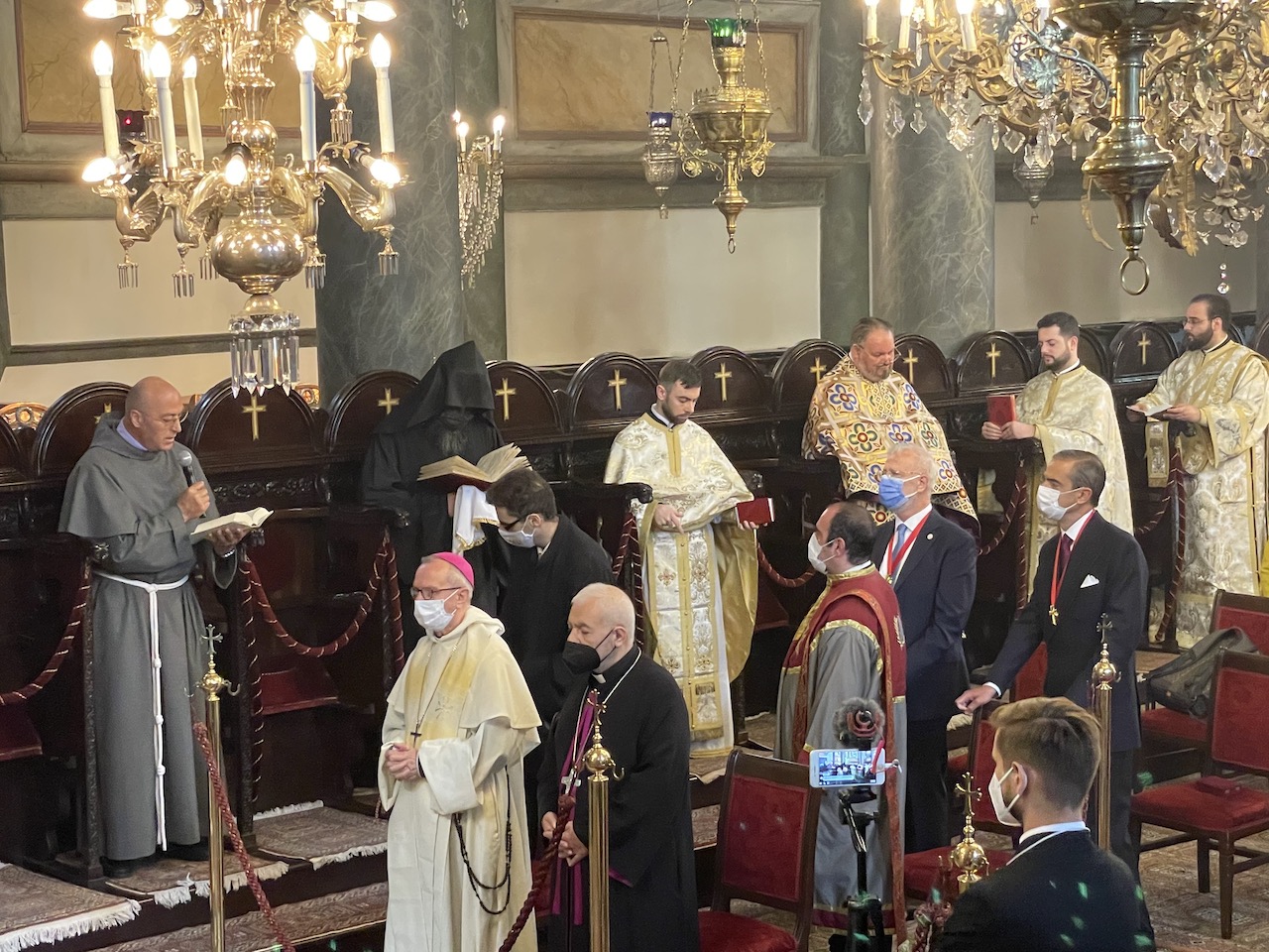 Εκκλησιάστηκαν η Γενική Πρόξενος της Ελλάδος στην Πόλη, Ευγεν. κ. Γεωργία Σουλτανοπούλου, με τον σύζυγό της, Πρέσβη κ. Ιωάννη Ραπτάκη, ο Αναπληρωτής Υπουργός Εξωτερικών της Ουκρανίας Εξοχ. Yevgueniy Yenin, με στελέχη του Γεν. Προξενείου της χώρας του στην Πόλη, Άρχοντες Οφφικιάλιοι του Οικουμενικού Θρόνου με επί κεφαλής τον Εντιμολ. κ. Κωνσταντίνο Δεληκωσταντή, Άρχοντα Διδάσκαλο του Γένους της Μ.τ.Χ.Ε. και Γεν. Γραμματέα της Αδελφότητας Οφφικιαλίων του Οικουμενικού Πατριαρχείου «Παναγία ἡ Παμμακάριστος», και πλήθος πιστών από την Πόλη και το εξωτερικό.