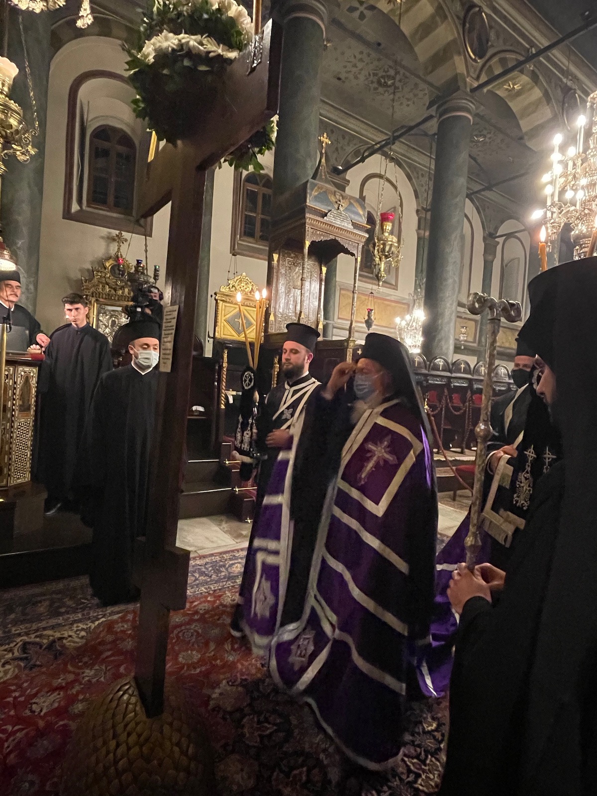 Ο Πατριαρχικός Ναός και όλο το Πατριαρχείο τυλίχθηκαν στο σκοτάδι κατά την περιφορά του Εσταυρωμένου, με τη συγκίνηση όλων να κορυφώνεται.