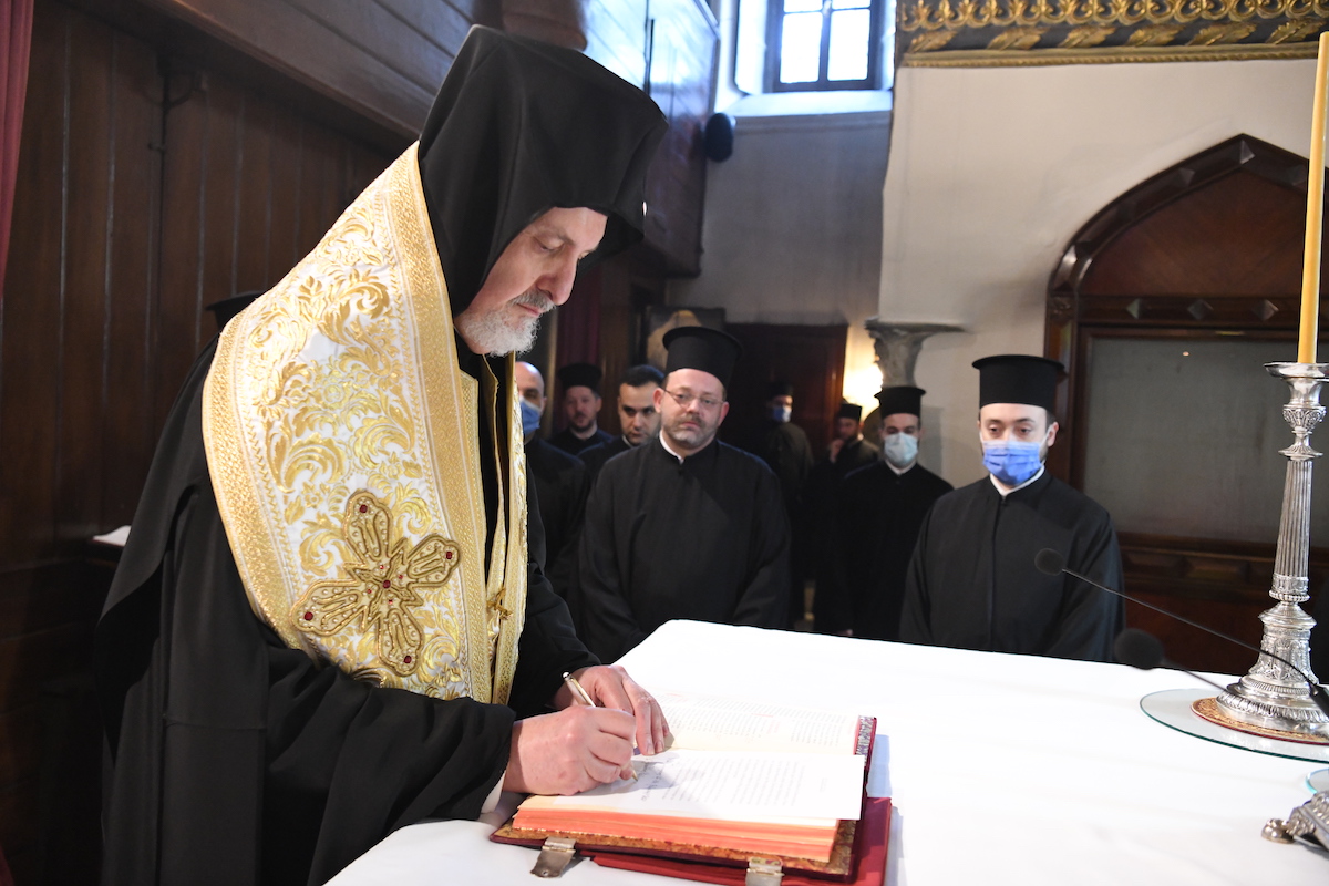 Υπόσχομαι να συνεχίσω με την ιδίαν αλλά και πλείονα διάθεσιν, πιστότητα, αφοσίωσιν και προσήλωσιν να διακονώ τας Ιεράς υποθέσεις της Εκκλησίας, τας ευθύνας του Αγιωτάτου Αποστολικού και Πατριαρχικού Οικουμενικού Θρόνου Σας, το Σεπτόν Σας πρόσωπον, τα ιδανικά και τα όσια του Γένους μας, τον λαόν του Θεού, την ευεργέτιδα όλων ημών Μητέρα Εκκλησίαν."