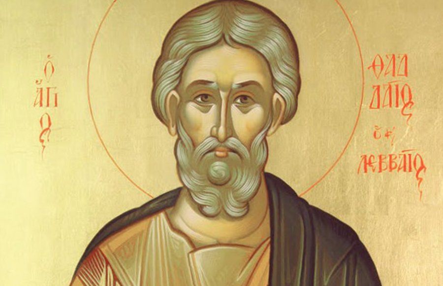 Σήμερα, 21 Αυγούστου, η αγία μας Εκκλησία τιμά τη μνήμη του Αποστόλου Ιούδα Θαδδαίου ή Λεββαίου, ο οποίος, σύμφωνα με τον Ευσέβιο Καισαρείας, συγκαταλέγεται στους εβδομήκοντα μαθητές του Χριστού. Θαδδαίος σημαίνει μεγάθυμος και Λεββαίος σημαίνει θαρραλέος. Ένεκα των πολλών ονομάτων ο Ιερώνυμος Ιππώνος τον ονομάζει «τριώνυμο». Υπήρξε αδελφός του Αγίου Ιακώβου του επονομαζομένου μικρού, παιδιά του Αλφαίου.