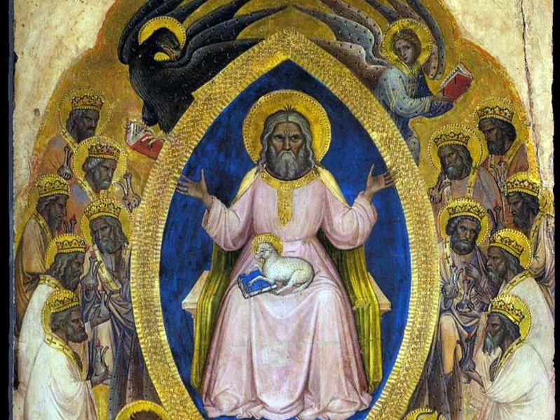 Φωτογραφία: Κεντρικό τμήμα του πολύπτυχου "Αποκάλυψη" του Jacobello Alberegno (1360-90). Τέμπερα σε ξύλο (95 x 61 εκ.), απεικονίζει σκηνές από την Αποκάλυψη του Ιωάννη με βυζαντινή επιρροή. Gallerie dell'Accademia, Βενετία, (Λεπτομέρεια).