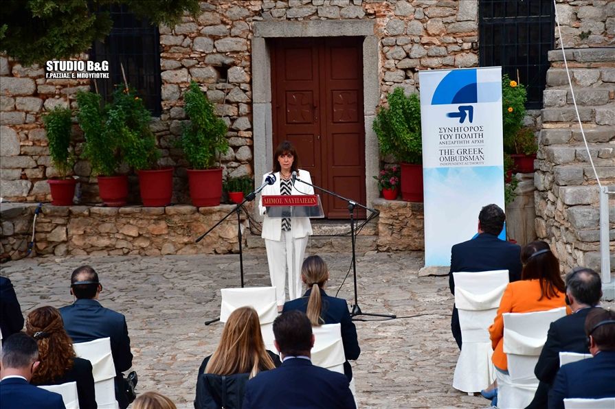 H Πρόεδρος της Δημοκρατίας Κατερίνα Σακελλαροπούλου μετέβη στο Ναύπλιο για να απευθύνει χαιρετισμό στην 11η Σύνοδο και Γενική Συνέλευση της Ένωσης των Συνηγόρων της Μεσογείου στο κάστρο Παλαμήδη , Δευτέρα 4 Οκτωβρίου 2021.