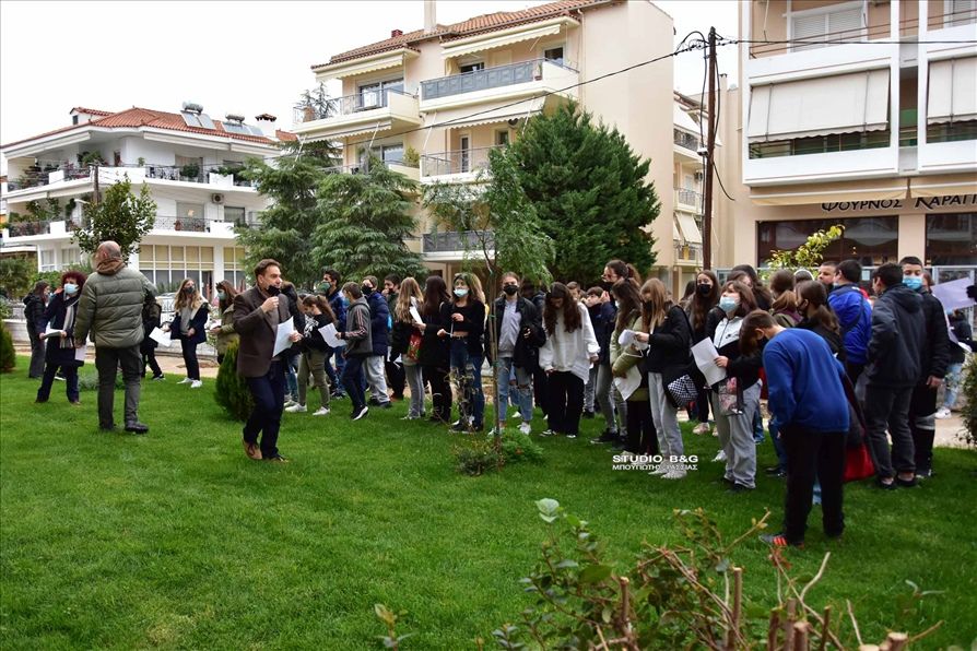 Συγκινητική ήταν η πρωτοβουλία εκπαιδευτικών και μαθητών της πρώτης τάξης του 1ου Γυμνασίου Ναυπλίου να πουν τα κάλαντα των Χριστουγέννων στους τρόφιμους του Γηροκομείου στην πόλη του Ναυπλίου, Πέμπτη 23 Δεκεμβρίου 2021.