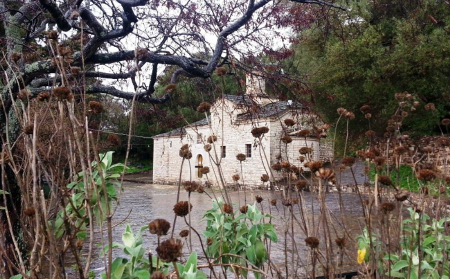 Τῷ καιρῷ ἐκείνῳ, ἠνάγκασεν ὁ Ἰησοῦς τοὺς μαθητὰς αὐτοῦ ἐμβῆναι εἰς τὸ πλοῖον καὶ προάγειν αὐτὸν εἰς τὸ πέραν, ἕως οὗ ἀπολύσῃ τοὺς ὄχλους. Καὶ ἀπολύσας τοὺς ὄχλους ἀνέβη εἰς τὸ ὄρος κατ' ἰδίαν προσεύξασθαι. Ὀψίας δὲ γενομένης μόνος ἦν ἐκεῖ. Τὸ δὲ πλοῖον ἤδη μέσον τῆς θαλάσσης ἦν, βασανιζόμενον ὑπὸ τῶν κυμάτων· ἦν γὰρ ἐναντίος ὁ ἄνεμος. Τετάρτῃ δὲ φυλακῇ τῆς νυκτὸς ἀπῆλθε πρὸς αὐτοὺς ὁ Ἰησοῦς περιπατῶν ἐπὶ τῆς θαλάσσης. Καὶ ἰδόντες αὐτὸν οἱ μαθηταὶ ἐπὶ τὴν θάλασσαν περιπατοῦντα ἐταράχθησαν λέγοντες ὅτι φάντασμά ἐστι, καὶ ἀπὸ τοῦ φόβου ἔκραξαν. Εὐθέως δὲ ἐλάλησεν αὐτοῖς ὁ Ἰησοῦς λέγων· Θαρσεῖτε, ἐγώ εἰμι· μὴ φοβεῖσθε. Ἀποκριθεὶς δὲ αὐτῷ ὁ Πέτρος εἶπε· Κύριε, εἰ σὺ εἶ, κέλευσόν με πρὸς σὲ ἐλθεῖν ἐπὶ τὰ ὕδατα· Ὁ δὲ εἶπεν, Ἐλθέ. Καὶ καταβὰς ἀπὸ τοῦ πλοίου ὁ Πέτρος περιεπάτησεν ἐπὶ τὰ ὕδατα ἐλθεῖν πρὸς τὸν Ἰησοῦν. Βλέπων δὲ τὸν ἄνεμον ἰσχυρὸν ἐφοβήθη, καὶ ἀρξάμενος καταποντίζεσθαι ἔκραξε λέγων· Κύριε, σῶσόν με. Εὐθέως δὲ ὁ Ἰησοῦς ἐκτείνας τὴν χεῖρα ἐπελάβετο αὐτοῦ καὶ λέγει αὐτῷ· Ὀλιγόπιστε! εἰς τί ἐδίστασας; Καὶ ἐμβάντων αὐτῶν εἰς τὸ πλοῖον ἐκόπασεν ὁ ἄνεμος. Οἱ δὲ ἐν τῷ πλοίῳ ἐλθόντες προσεκύνησαν αὐτῷ λέγοντες· Ἀληθῶς Θεοῦ υἱὸς εἶ. Καὶ διαπεράσαντες ἦλθον εἰς τὴν γῆν Γεννησαρέτ.