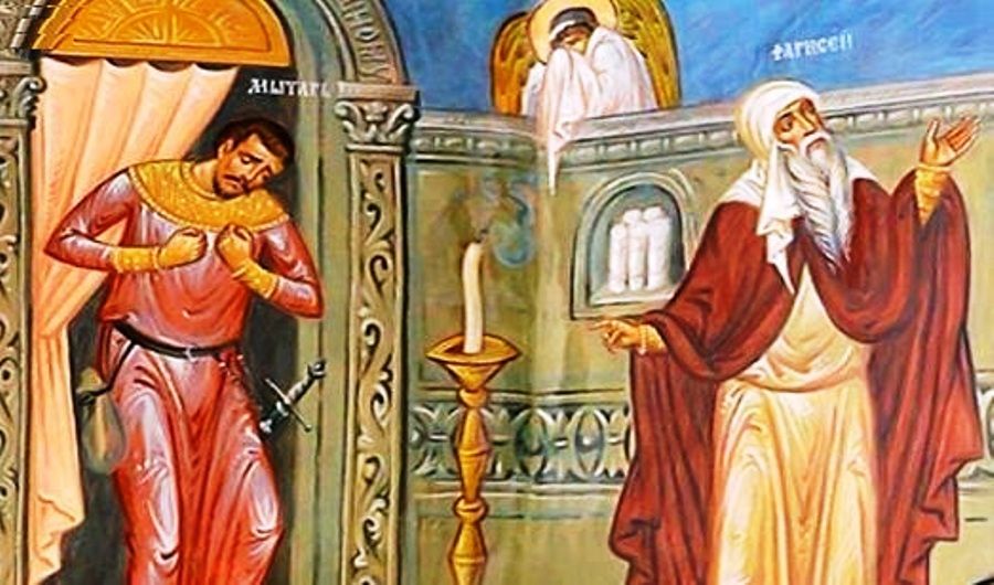 Δύο εικόνες αντίθετες αλλά εξαιρετικά διδακτικές, αγαπητοί μου αδελφοί, μας παρουσιάζει η περικοπή του σημερινού ευαγγελίου. Δύο άνθρωποι ξεκινούν για ένα κοινό σκοπό αλλά καταλήγουν σε αντίθετα αποτελέσματα. Ο ένας είναι Φαρισαίος και ο άλλος Τελώνης. Έρχονται στο ναό και αυτό δείχνει πως το θρησκευτικό τους συναίσθημα είναι βαθιά ριζωμένο και δεν χάνεται όσο και αν το καταπιέζει η κακία και η αμαρτία, όσο και αν με χίλιους τρόπους αγωνίζονται να το ξεριζώσουν. Ο Φαρισαίος ανήκει στη τάξη των ανθρώπων της πίστεως. Κρατάει το νόμο και τους προφήτες και θεωρείται καλός και άγιος.