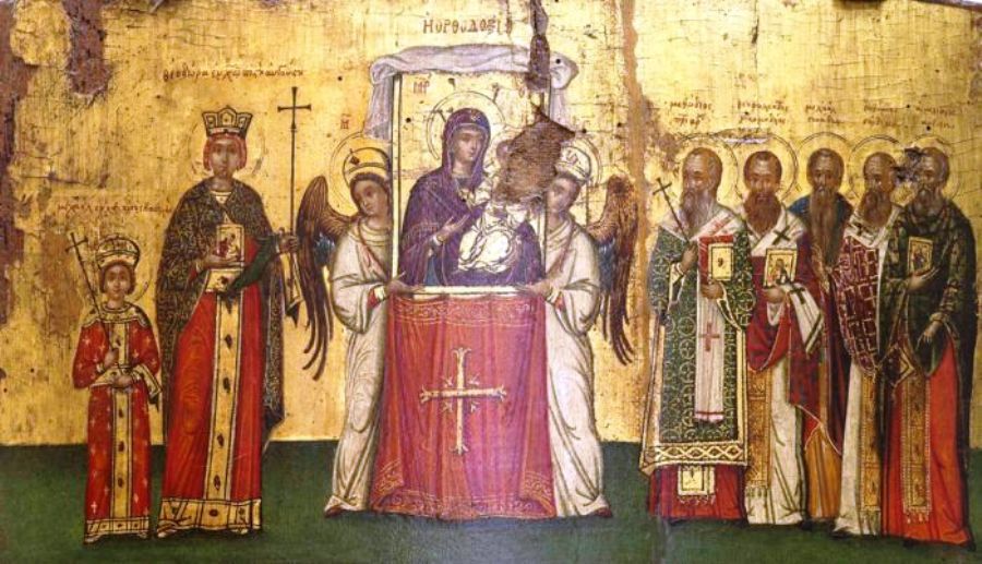Πρώτη Κυριακή της μεγάλης Τεσσαρακοστής είναι αφιερωμένη στη νίκη της Ορθοδοξίας εναντίον της εικονομαχίας και όλων των αιρέσεων. Πριν από δώδεκα αιώνες επί εκατό χρόνια αναστατώθηκε η χριστιανοσύνη για το ζήτημα των ιερών εικόνων. Η αφορμή και το πρόσχημα ήταν η προσκύνηση των ιερών εικόνων, η αίρεση όμως είχε βαθύτερες ρίζες, κι όπως είπε ο Άγιος Θεόδωρος ο Στουδίτης, ήταν μια «ἀθεώτατη μεταστοιχείωσις τῶν ἁπάντων», απέβλεπε δηλαδή σε μια γενική ανατροπή της Εκκλησίας. Ήταν μια ατυχής ανάμιξη του Κράτους στα πράγματα της Εκκλησίας, σαν εκείνες που πολλές φορές δυστυχώς έγιναν στην Ιστορία, εξαιτίας των οποίων πάντα η Εκκλησία πλήρωσε ξένες αμαρτίες.