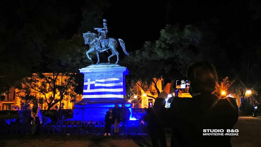 Με την Ελληνική σημαία φωτίστηκε το άγαλμα του Κολοκοτρώνη στο Ναύπλιο