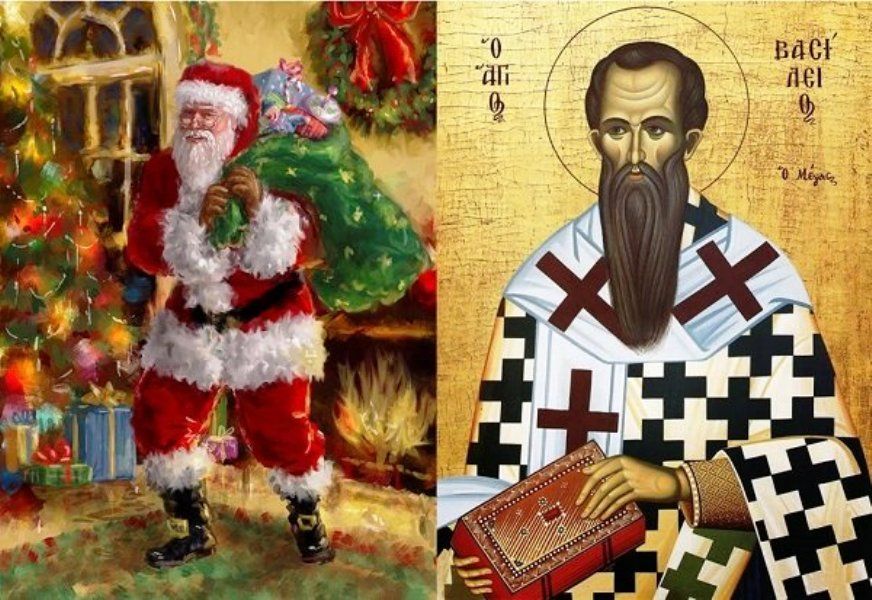Τα ονόματα που έλαβε, είτε του αγίου Νικολάου, είτε του αγίου Βασιλείου δεν είναι τυχαία. Οι δύο αυτοί σημαντικοί άγιοι της αρχαίας Εκκλησίας μας υπήρξαν μεγάλοι ανθρωπιστές και κοινωνικοί εργάτες της κοινωνίας. Η άσκηση της φιλανθρωπίας από τον άγιο Νικόλαο, επίσκοπο Μύρων της Λυκίας (+340) υπήρξε παροιμιώδης. Το ιερό του συναξάρι είναι γεμάτο από άπειρα περιστατικά πραγματικής βοήθειας των αναξιοπαθούντων ανθρώπων της ευρύτερης περιοχής της επισκοπής του και από άτεγκτους ελέγχους κατά των αδίκων ισχυρών. Για τους πιστούς ορθοδόξους ο άγιος Νικόλαος είναι ο άγιος της καλοσύνης, του ελέους και της φιλανθρωπίας. Αλλά και ο άγιος Βασίλειος (+379) είναι ο κατεξοχήν κοινωνικός θεωρητικός και πρακτικός πατέρας της Εκκλησίας μας. Ολόκληρη η ζωή του υπήρξε ένας συνεχής αγώνας ανακούφισης της ανθρώπινης ένδειας και δυστυχίας. Η περίφημη «Βασιλειάδα» της Καππαδοκίας, έργο ζωής του αγίου και πρότυπο φιλανθρωπικό ίδρυμα για όλες τις εποχές, μαρτυρεί περίτρανα την υπέρτατη προσφορά του κορυφαίου αυτού εκκλησιαστικού άνδρα. Μέσα στη χριστιανική συνείδηση οι δυο αυτοί κοινωνικοί άγιοι πέρασαν ως οι αέναοι χορηγοί κάθε είδους φιλανθρωπίας και γι' αυτό οι προχριστιανικοί μυθικοί διανομείς δώρων στους ανθρώπους αντικαταστάθηκαν από αυτούς.