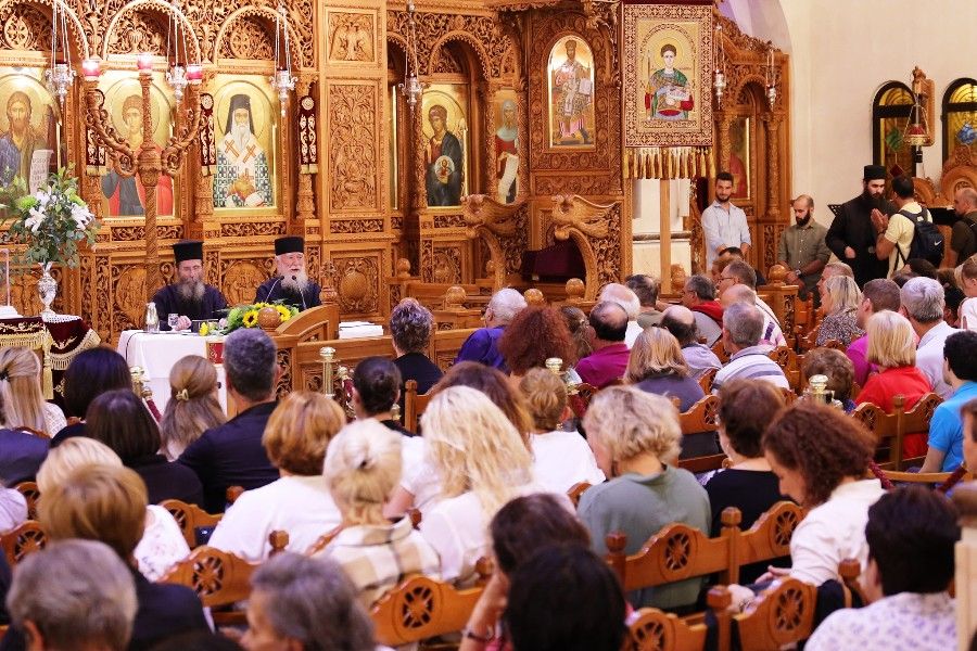 Τη Δευτέρα, 2 Οκτωβρίου στις 7.00 το απόγευμα, στον Ιερό Ναό μας, πραγματοποιήθηκε σύμφωνα με το πρόγραμμα, ομιλία του Πανοσιολογιώτατου Ιερομονάχου π. Νίκωνα Αγιορείτη, Γέροντα της Ιεράς Καλύβης Αγίων Αποστόλων, Σκήτης Ιεράς Μονής Ξενοφώντος Αγίου Όρους, με θέμα: "Μεταξύ οὐρανού και γης".