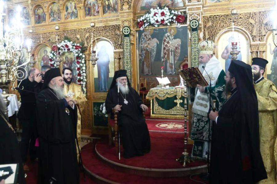 Τον Θείο Λόγο κήρυξε ο Μητροπολίτης Λαγκαδά, ενώ λίγο πριν το πέρας της Θείας Λειτουργίας ο Μητροπολίτης Περιστερίου τίμησε τον Αρχιεπίσκοπο με την ανώτατη τιμητική διάκριση της τοπικής Εκκλησίας, τον Μεγαλόσταυρο του Αγίου Αντωνίου, σε ένδειξη απεριόριστης ευγνωμοσύνης για το εκκλησιαστικό, ποιμαντικό, θεολογικό και ευρύτερο πνευματικό του έργο. Ευχαρίστησε τον Αρχιεπίσκοπο για την παρουσία του, η οποία «λαμβάνει χώρα σε συνθήκες εξαιρετικά δύσκολες για την παγκόσμια Κοινότητα, εξαιτίας, μεταξύ άλλων, και των δύο θανατηφόρων πολέμων που λαμβάνουν χώρα στην ευρύτερη γειτονιά μας».