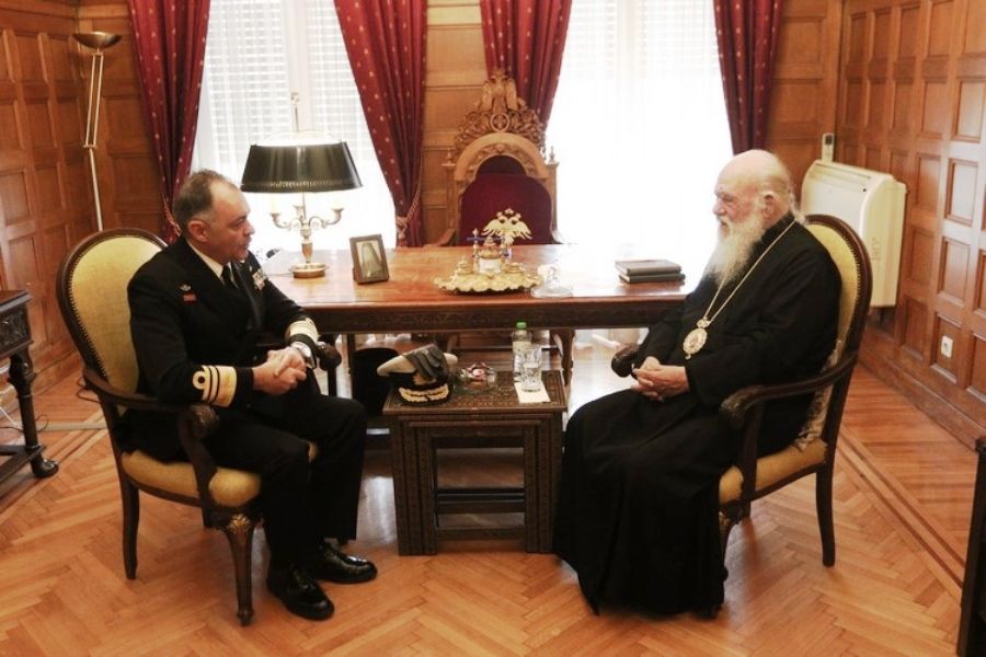 Κατόπιν, εθιμοτυπική επίσκεψη στον Αρχιεπίσκοπο πραγματοποίησε ο Αρχηγός Στόλου του Πολεμικού Ναυτικού, Αντιναύαρχος κ. Δημήτριος - Ελευθέριος Κατάρας.