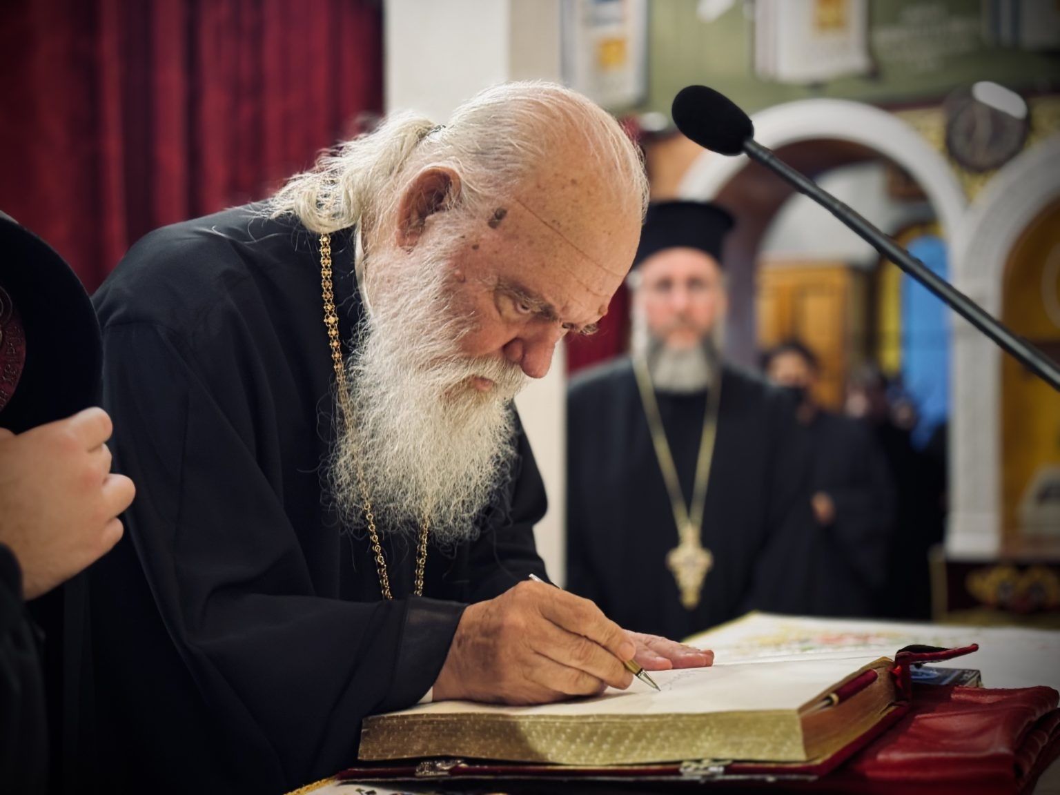 Ἐπί δέ τούτοις, θερμήν ἀναπέμπομεν τήν ἱκεσίαν πρός τόν Ἄρχοντα τῆς εἰρήνης ἵνα διαφυλάττῃ τήν φιλτάτην Ὑμῶν Πατρίδα ἀπό πάσης περιστάσεως καί κατασπαζόμενοι τήν Ὑμετέραν περισπούδαστον Μακαριότητα φιλήματι ἁγίῳ, διατελοῦμεν μετά βαθείας ἀδελφικῆς ἀγάπης