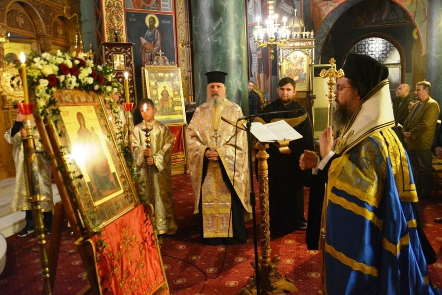 Στην ακολουθία χοροστάτησε ο Σεβασμιώτατος Ποιμενάρχης μας, Μητροπολίτης Αιτωλίας και Ακαρνανίας κ. Δαμασκηνός, ο οποίος έψαλλε τους Οίκους ενώπιον της εικόνας της Θεοτόκου, συμπαραστατούμενος από τον πρωτοπρ. Δημήτριο Πατσιαλό, Προϊστάμενο του Ναού και τους διακόνους π. Στέφανο Καππέ και π. Αμβρόσιο Καλλιάφα. Τους ύμνους της Ακολουθίας απέδωσαν ο Πρωτοψάλτης κ. Κωνσταντίνος Μπορμπότσιαλος και ο Λαμπαδάριος κ. Κωνσταντίνος Καντάνης.