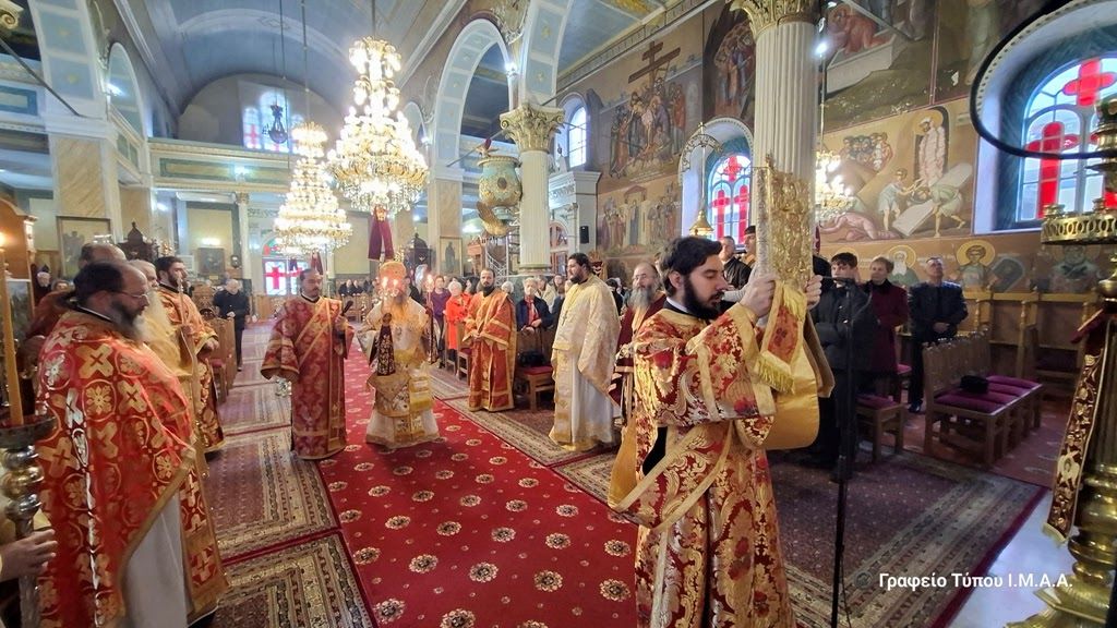 Στον ιστορικό Ιερό Ναό της Αγίας Παρασκευής, στην Ιερά Πόλη του Μεσολογγίου χοροστάτησε στην Ακολουθία του Όρθρου και προεξήρχε στην πανηγυρική Αρχιερατική Θεία Λειτουργία, ο Σεβασμιώτατος Μητροπολίτης Αιτωλίας και Ακαρνανίας κ. Δαμασκηνός, την δεύτερη ημέρα των Χριστουγέννων, Παρασκευή 26 Δεκεμβρίου 2025, εορτή της Συνάξεως της Υπεραγίας Θεοτόκου.