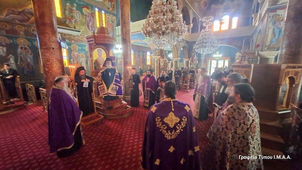 Στο Αγρίνιο, η Ακολουθία του Κατανυκτικού Εσπερινού τελέσθηκε στον Ιερό Ναό Αγίου Γεωργίου, χοροστατούντος του Θεοφιλεστάτου Επισκόπου Κερνίτσης κ. Χρυσάνθου, ο οποίος κήρυξε και τον θείο λόφο.