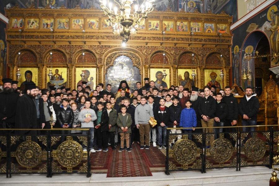 Στην Ακολουθία συμμετείχαν οι Αναγνώστες, οι Ιερόπαιδες και οι Υποψήφιοι Κληρικοί της τοπικής μας Εκκλησίας, προς τους οποίους ο Σεβασμιώτατος μίλησε πατρικά και καρδιακά στο τέλος της Ακολουθίας. Μοιράστηκε μαζί τους τις δικές του παιδικές αναμνήσεις από τα χρόνια που διακονούσε ως ιερόπαις στο Ιερό Βήμα της Εκκλησίας του χωριού του στη Σάμο και στη συνέχεια ως αναγνώστης στον Πειραιά. Τόνισε στα παιδιά, ότι αυτή η διακονία τους μέσα στην Εκκλησία είναι πολύ σημαντική και σπουδαία και θα πρέπει να την επιτελούν με σοβαρότητα, ιεροπρέπεια και σεβασμό. Αναφέρθηκε στον κίνδυνο της εξοικείωσης με τον χώρο του Ναού και με τα τελούμενα και τους επέστησε την προσοχή να κινούνται με σεβασμό, διάκριση και να μην ξεχνούν, ότι το έργο τους είναι ιερό και μοιάζει με αυτό των αγγέλων.
