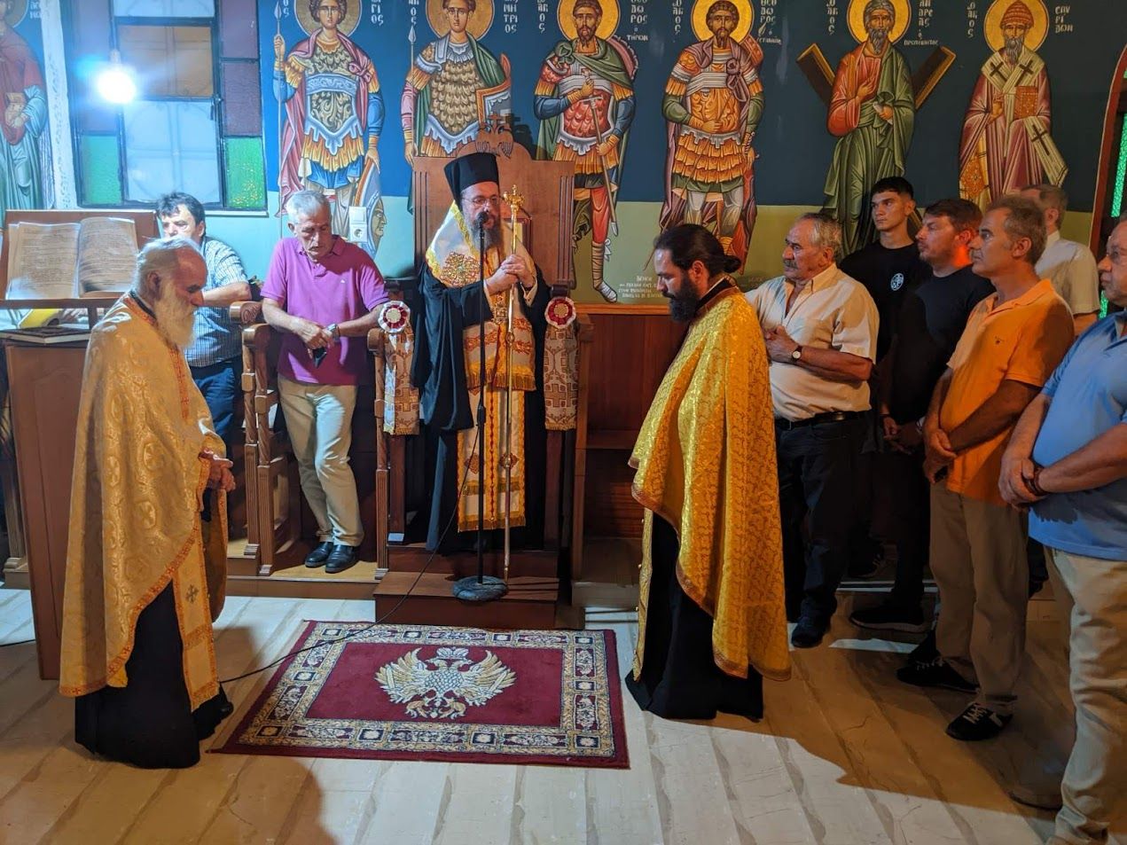 Ο Σεβασμιώτατος ευχήθηκε στους πιστούς για την εορτή της Κοιμήσεως της Θεοτόκου και είχε την ευκαιρία να επικοινωνήσει ξεχωριστά με τον καθένα, να γνωρίσει τα στελέχη των Ενοριών αυτών και να δεχθεί την φιλοξενία τους.