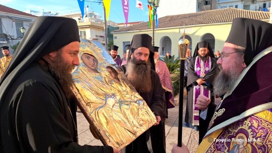 Την Ιερά και Θαυματουργό Εικόνα της Υπεραγίας Θεοτόκου, από την ιστορική Ιερά Μονή Ομπλού Πατρών υποδέχθηκε η Ιερά Πόλη του Μεσολογγίου, στον Ιερό Ναό του Αγίου Παντελεήμονος, το απόγευμα της Δευτέρας 10 Μαρτίου 2025.