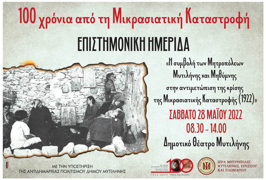Η Ιερά Μητρόπολη Μυτιλήνης, Ερεσσού και Πλωμαρίου στo πλαίσιo σειράς εκδηλώσεων τιμής και μνήμης στην 100ετηρίδα της Μικρασιατικής Καταστροφής και των προσφύγων ως αποτέλεσμα αυτής, που έχει προγραμματίσει, διοργανώνει επιστημονική ημερίδα με θέμα: