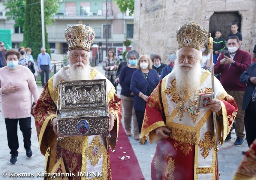 Στο τέλος του Πανηγυρικού Εσπερινού ο Σεβασμιώτατος Μητροπολίτης μας κ. Παντελεήμων κήρυξε τον θείο λόγο και εξέφρασε τις θερμές ευχαριστίες του λέγοντας μεταξύ άλλων: Μέ συγκίνηση καί κατάνυξη ὑποδεχθήκαμε πρό ὀλίγου τμῆμα τοῦ ἱεροῦ λειψάνου τῆς ἁγίας νεομάρτυρος Φιλοθέης τῆς Ἀθηναίας, τό ὁποῖο εἶχε τήν καλωσύνη νά μεταφέρει στήν ἡρωική πόλη τῆς Ναούσης καί στόν τόπο αὐτό τοῦ μαρτυρίου τῶν ἁγίων πέντε ἱερομαρτύρων καί τῶν σύν αὐτοῖς μαρτυρικῶς τελειωθέντων Ναουσαίων, στόν ναό τοῦ μεγαλομάρτυρος ἁγίου Γεωργίου τοῦ τροπαιοφόρου, ἀνταποκρινόμενος στό αἴτημά μας μέ τήν ἄδεια καί τήν εὐλογία τοῦ Μακαριωτάτου Ἀρχιεπισκόπου Ἀθηνῶν καί πάσης Ἑλλάδος κ.κ. Ἱερωνύμου, ὁ πανοσιολογιώτατος ἀρχιμανδρίτης π. Διονύσιος Χατζηαντωνίου, ἱερατικῶς προϊστάμενος τοῦ ἱεροῦ ναοῦ τῆς Ἁγίας Φιλοθέης, τοῦ Δήμου Φιλοθέης-Ψυχικοῦ, στόν ὁποῖο φυλάσσεται ὡς κειμήλιο ἱερό καί πολύτιμο.