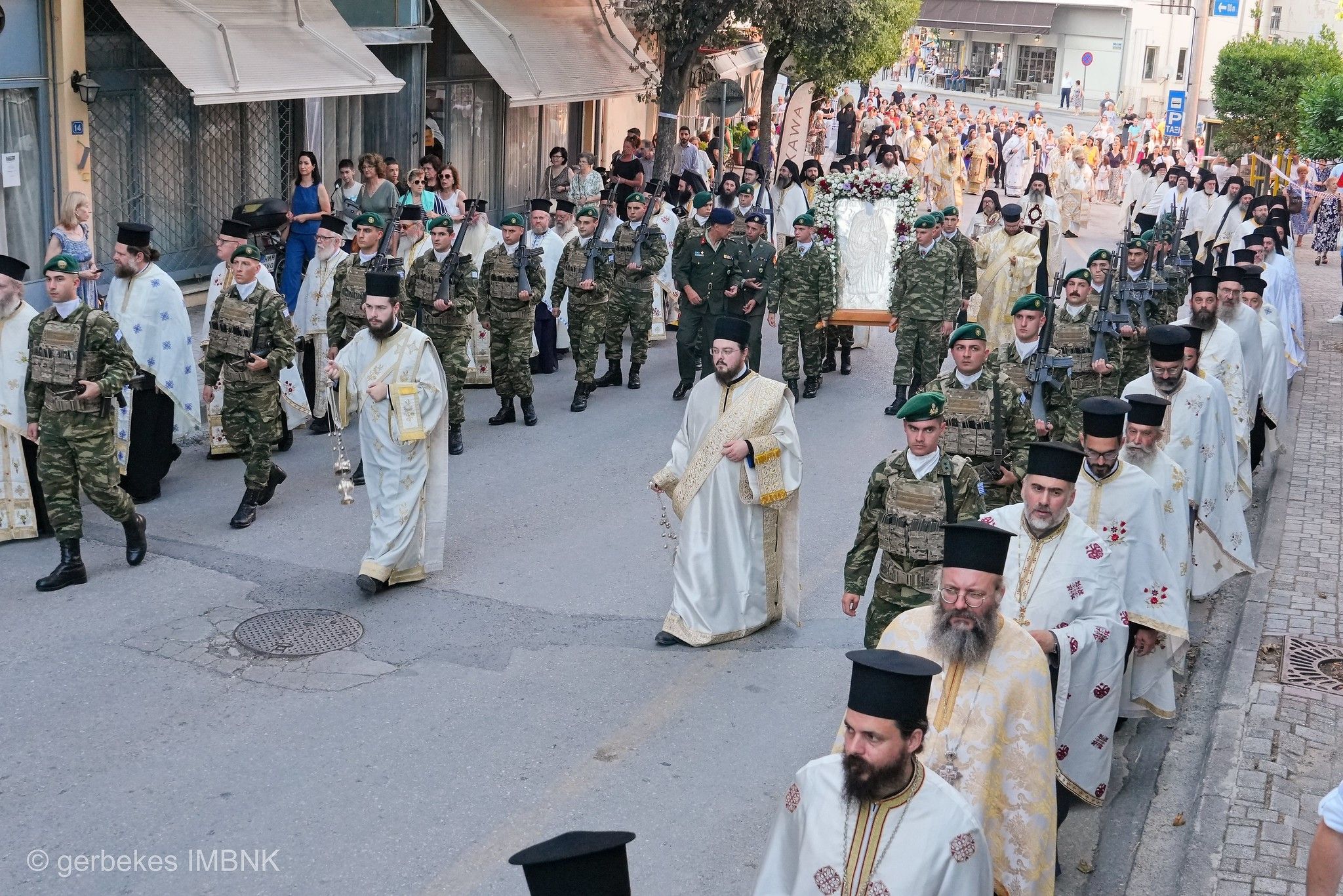 Στον Πανηγυρικό Πολυαρχιερατικό Εσπερινό προεξήρχε ο Ποιμενάρχης μας, Σεβασμιώτατος Μητροπολίτης Βεροίας, Ναούσης και Καμπανίας κ. Παντελεήμων και συμμετείχαν οι εκπρόσωποι των Πρεσβυγενών και Νεωτέρων Πατριαρχείων και Αυτοκεφάλων Εκκλησιών, Σεβασμιώτατοι Μητροπολίτες Βελγίου κ. Αθηναγόρας (Οικουμενικό Πατριαρχείο), ο Θεοφ. Επίσκοπος Αρούσας και Κεντρικής Τανζανίας κ. Αγαθόνικος (Πατριαρχείο Αλεξανδρείας), ο Σεβ. Αρχιεπίσκοπος Ανθηδώνος κ. Νεκτάριος, εκπρόσωπος του Πατριαρχείου Ιεροσολύμων (Πατριαρχείο Ιεροσολύμων), o Θεοφ. Επίσκοπος Λονδίνου, Μ. Βρετανίας και Ιρλανδίας κ. Νεκτάριος (Πατριαρχείο Σερβίας), ο Θεοφ. Ἐπίσκοπος Κοβάσνα και Χαργκίτα κ. Ανδρέας (Πατριαρχείο Ρουμανίας), ο Θεοφ. Επίσκοπος Γκλαβινίτσης κ. Μακάριος (Πατριαρχείο Βουλγαρίας), ο Σεβασμιώτατος Μητροπολίτης Ζουγκδίδι και Τσαΐσι κ. Γεράσιμος (Πατριαρχείο Γεωργίας), ο Θεοφ. Επίσκοπος Καρπασίας κ. Χριστοφόρος (Εκκλησία της Κύπρου), ο Σεβ. Μητροπολίτης Σισανίου και Σιατίστης κ. Αθανάσιος (Εκκλησία της Ελλάδος) και ο Σεβ. Μητροπολίτης Μεσσηνίας κ. Χρυσόστομος. Συμμετείχε επίσης ο Παν. Ιερομόναχος κ. Σάββας, εκπρόσωπος της Εκκλησίας τηε Πολωνίας.