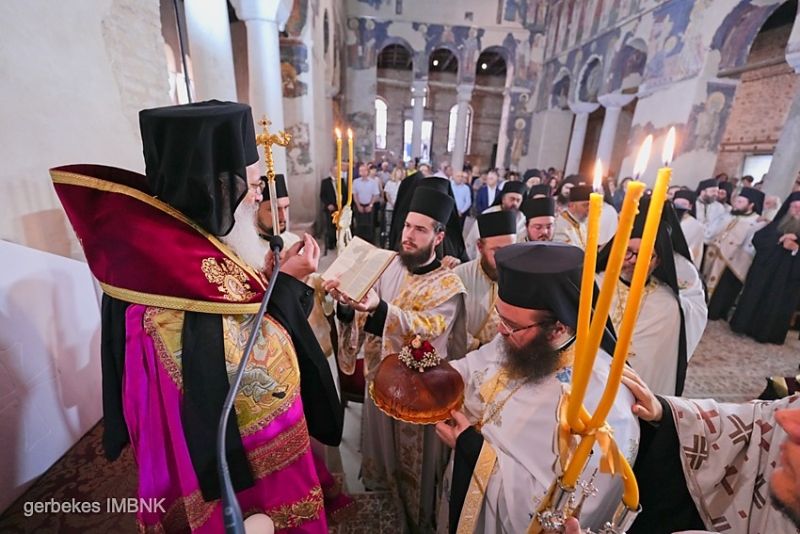 Στον Πανηγυρικό Εσπερινό χοροστάτησε ο Θεοφιλέστατος Επίσκοπος Καρπασίας κ. Χριστοφόρος, εκπρόσωπος της Εκκλησίας της Κύπρου, ενώ έλαβαν μέρος οι εκπρόσωποι των Ορθοδόξων Πατριαρχείων και Αυτοκεφάλων Εκκλησιών: ο Σεβ. Μητροπολίτης Βελγίου κ. Αθηναγόρας, εκπρόσωπος της ΑΘΠ του Οικουμενικού Πατριάρχου κ.κ. Βαρθολομαίου, ο Θεοφ. Επίσκοπος Αρούσας και Κεντρικής Τανζανίας κ. Αγαθόνικος, εκπρόσωπος του Πατριαρχείου Αλεξανδρείας, ο Σεβ. Αρχιεπίσκοπος Ανθηδώνος κ. Νεκτάριος, εκπρόσωπος του Πατριαρχείου Ιεροσολύμων, ο Έξαρχος του Παναγίου Τάφου Παν. Αρχιμ. κ. Ιερώνυμος, o Θεοφ. Επίσκοπος Λονδίνου, Μ. Βρετανίας και Ιρλανδίας κ. Νεκτάριος, εκπρόσωπος του Πατριαρχείου Σερβίας, ο Θεοφ. Ἐπίσκοπος Κοβάσνα και Χαργκίτα κ. Ανδρέας, εκπρόσωπος του Πατριαρχείου Ρουμανίας, ο Θεοφ. Επίσκοπος Γκλαβινίτσης κ. Μακάριος, εκπρόσωπος του Πατριαρχείου Βουλγαρίας, ο Σεβ. Μητροπολίτης Ζουκδίδι καί Τσαΐσι κ. Γεράσιμος, εκπρόσωπος του Πατριαρχείου Γεωργίας, ο Σεβ. Μητροπολίτης Σισανίου και Σιατίστης κ. Αθανάσιος, εκπρόσωπος της Εκκλησίας της Ελλάδος, ο Παν. Ιερομόναχος κ. Σάββας, εκπρόσωπος της Εκκλησίας της Πολωνίας. ο ΑΙδεσ. Πρωτ. κ. Μιχαήλ, εκπρόσωπος της Εκκλησίας της Αλβανίας, ο Σεβ. Μητροπολίτης Μεσσηνίας κ. Χρυσόστομος και ο Ποιμενάρχης μας Σεβ. Μητροπολίτης Βεροίας, Ναούσης και Καμπανίας κ. Παντελεήμων, ο οποίος κήρυξε και το θείο Λόγο.