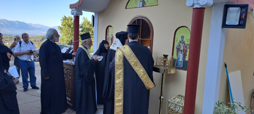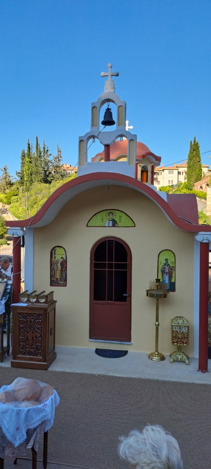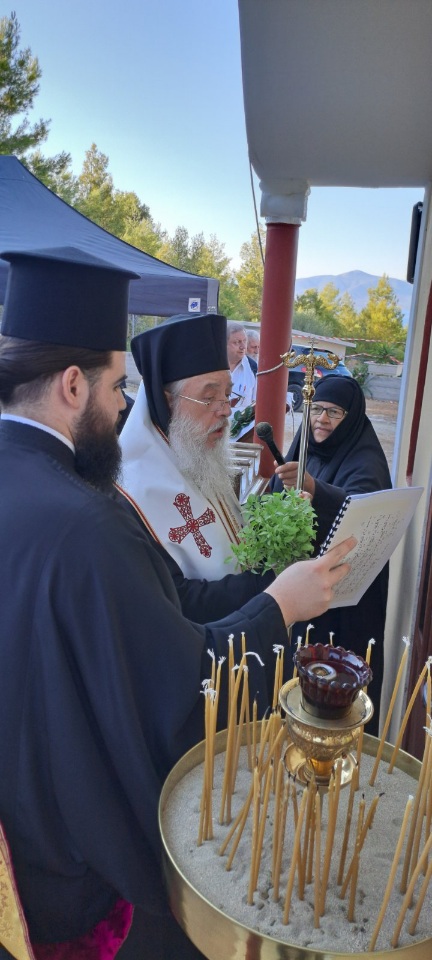 Τέλος, ο Σεβασμιώτατος συνεχάρη τις δωρήτριες του Ιερού Παρεκκλησίου, για την θεάρεστη αποφασή τους να ανεγείρουν έναν χώρο λατρείας, καταφυγής και ανάπαυσης στο χώρο της Ιερά Μονής.