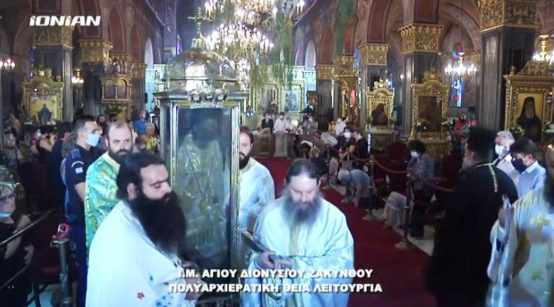 Με κατάνυξη και λαμπρότητα τίμησε η νήσος της Ζακύνθου την Μετακομιδή του Ιερού σκηνώματος του Αγίου Διονυσίου απο τα Στραφάδια στην πόλη της Ζακύνθου που έγινε το έτος 1717 για την φύλαξη του απο τους Αβάρους.