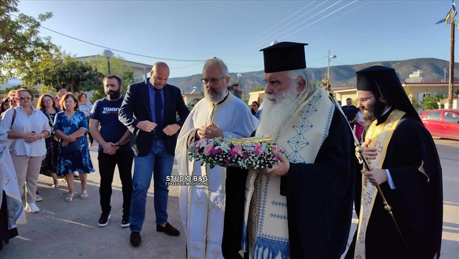Η υποδοχή πραγματοποιήθηκε στα προπύλαια του ιερού ναού και εψάλλει Αρχιερατικός εσπερινός παρουσία του μητροπολίτη Αργολίδας Νεκταρίου.