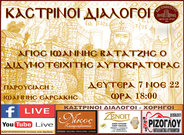 «Άγιος Ιωάννης Βατάτζης ο Διδυμοτειχίτης Αυτοκράτορας» Παρουσίαση Χρήστος Μοκαΐτης και Ιωάννης Σαρσάκης