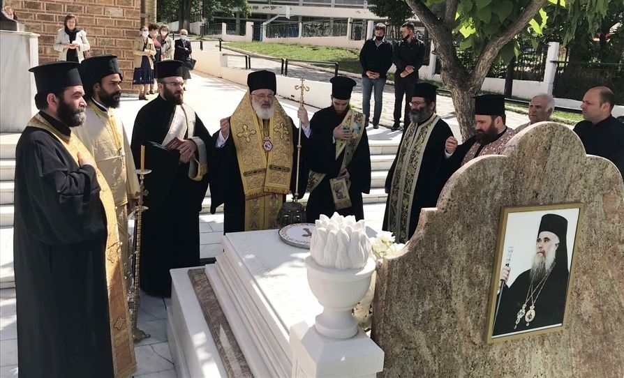 Μετά τη Θεία Λειτουργία, ο οικείος Μητροπολίτης κ. Δαμασκηνός προέστη του Μνημοσύνου και του επιταφίου Τρισαγίου του μακαριστού προκατόχου του κυρού Νικηφόρου και κατέθεσε στέφανο στόν παρακείμενο ανδριάντα του.