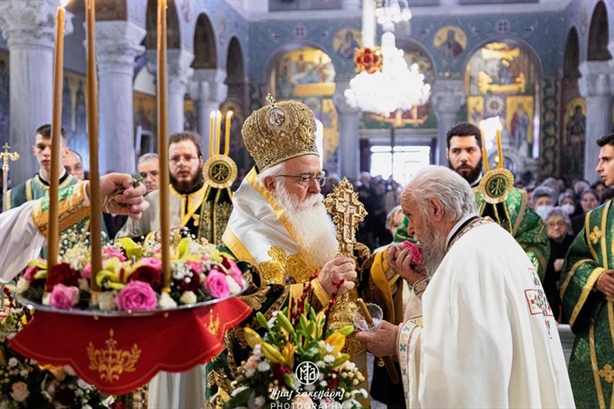 Κατά την διάρκεια της Θείας Λειτουργίας, αναγνώστηκε το Μήνυμα της Ιεράς Συνόδου για τις Ιερατικές Κλίσεις. Στο τέλος, ο Σεβασμιώτατος τίμησε τους δωρητές, που συνέβαλαν στην αποκατάσταση των υλικών ζηλιών που υπέστη ο Ναός, κατά την διάρκεια της διπλής κακοκαιρίας του περασμένου Σεπτεμβρίου, για τις οποίες μίλησε ο Προϊστάμενος του Ναού Αρχιμ. Καλλίνικος Γεωργακόπουλος. Οι αξιέπαινοι δωρητές ήταν η ΧΑΛΥΒΟΥΡΓΙΑ ΕΛΛΑΔΟΣ Α.Ε. και μεμονωμένα πρόσωπα, που με μικρότερα ποσά, συνέβαλαν στην διενέργεια των απαραίτητων εργασιών. Από την μεριά του, ο Σεβασμιώτατος ευχαρίστησε τους δωρητές, τους απένειμε τις σχετικές τιμητικές διακρίσεις και τόνισε πόση σημασία έχει η συνένωση των δυνάμεων για την αντιμετώπιση ανάλογων κρίσεων, ενώ επανέλαβε την μεγάλη προσπάθεια της Τοπικής μας Εκκλησίας να στηρίξει τους πλημμυροπαθείς, προκειμένου να σταθούν στα πόδια τους, μετά την καταστροφή. Τέλος, ο κ. Ιγνάτιος απηύθυνε πρόσκληση προς όλους εκείνους που έχουν τις προϋποθέσεις να ιερωθούν, ακόμα και σε ώριμη ηλικία, να το πράξουν, όπως συνέβη, μέχρι σήμερα, με πολλούς εθελοντές – αμίσθους Κληρικούς μας, για να παραμένουν τα Θυσιαστήρια ενεργά και να ποιμαίνεται επαρκώς ο λαός του Θεού.