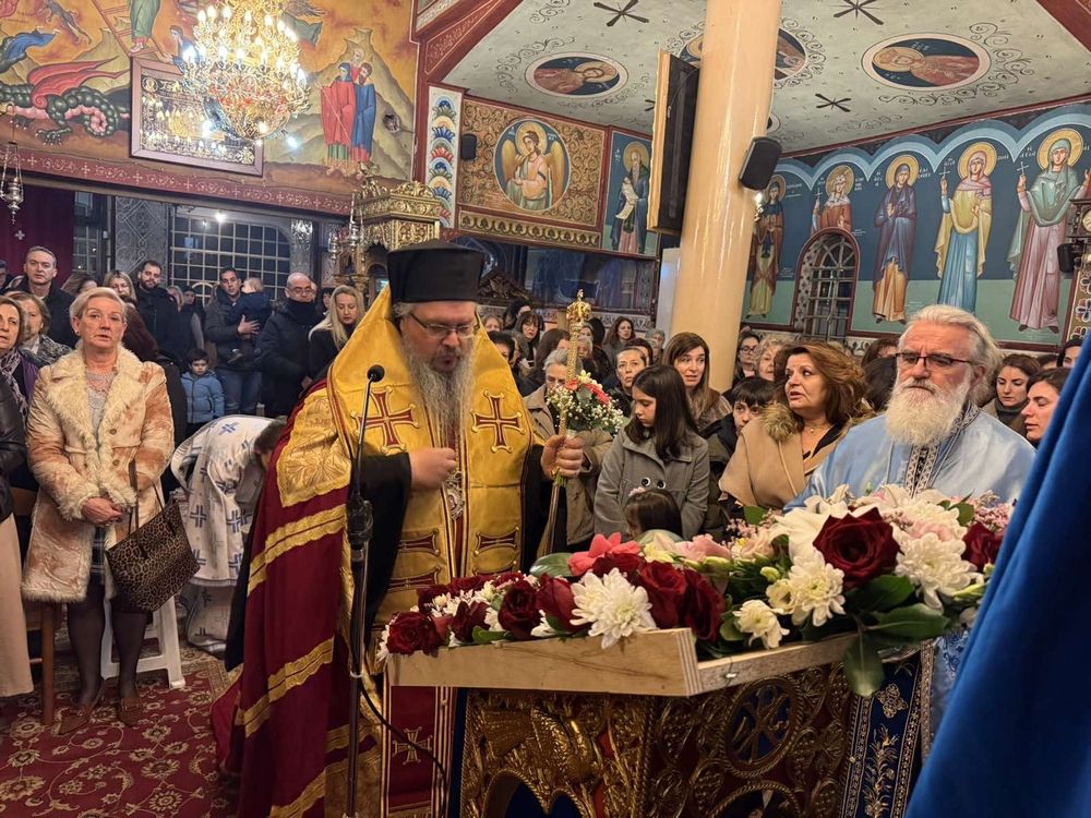 Στη συνέχεια ο Σεβασμιώτατος μετέβη στον Ιερό Ενοριακό και Κοιμητηριακό Ναό Παμμεγίστων Ταξιαρχών, παλαιού Κοιμητηρίου πόλεως Λαρίσης, όπου και πάλι πλήθος κόσμου περίμενε για τη λαοφιλή αυτή Ακολουθία. Στο κήρυγμά του ο Σεβασμιώτατος αναφέρθηκε στην αγωνία που μας έχει καταλάβει ενόψει των όσων εξελίσσονται τριγύρω μας, έκανε μία ιστορική αναδρομή για να αποδείξει ότι οι λαοί είναι έντιμοι και ικανοί να παράξουν πολιτισμό, πολλές φορές όμως οι ηγέτες τους δεν στέκονται στο ύψος των περιστάσεων και τους εκθέτουν. Ειδική αναφορά έκανε στο λαό του Ιράν και την ανά τους αιώνες παρουσία του στο ιστορικό προσκήνιο, ιδίως σε σχέση με τους Έλληνες. Τόνισε ότι ο χριστιανός δεν μπορεί να έχει στην καρδιά του μίσος, αλλά μόνο σεβασμό και αγάπη για τον όποιον άλλον. Παρακάλεσε όμως, ιδιαιτέρως να κάνουμε προσευχή για τα πληρώματα των πλοίων και αεροσκαφών μας, τα οποία μετέβησαν στη Μεγαλόνησο Κύπρο, προκειμένου να τονώσουν το αίσθημα ασφάλειας των Κυπρίων αδελφών μας και να προστατεύσουν μαζί με πληρώματα πλοίων και αεροσκαφών από τη Μεγάλη Βρετανία, τη Γαλλία, τη Γερμανία, και την Ιταλία, τα σύνορα της Κύπρου τα οποία είναι σύνορα της Ευρώπης, κάτι το οποίο πρέπει να γίνει πλήρως κατανοητό ώστε να αρθούν αδικίες ετών. Για όλους αυτούς, αλλά και για όσα στελέχη των Ενόπλων Δυνάμεων είναι σε επιφυλακή αυτές τις ημέρες, έτοιμα να διασφαλίσουν την προστασία του λαού μας, ο Σεβασμιώτατος ζήτησε εκτενή προσευχή και ευχήθηκε η Κυρία Θεοτόκος να τους σκεπάζει, να τους προφυλάττει, αλλά και να τους ενισχύει στο ευαίσθητο και υπεύθυνο έργο τους.