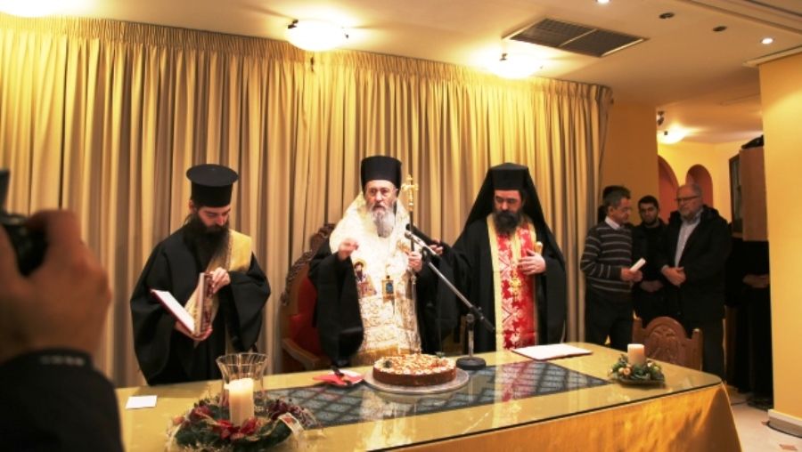 Τήν Τρίτη 31 Δεκεμβρίου, τό μεσημέρι, ἀφοῦ ὁ Σεβασμιώτατος ἄκουσε τά κάλαντα ἀπό τά παιδιά καί τήν Παπαχαραλάμπειο Δημοτική Φιλαρμονική στό Ἐπισκοπεῖο, μετέβη στήν αἴθουσα τοῦ Ἱεροῦ Μητροπολιτικοῦ Ναοῦ Ναυπάκτου γιά τήν κοπή τῆς βασιλόπιτας γιά τούς συνεργάτες τῆς Ἱερᾶς Μητροπόλεως, πού εἶναι καί ἡ πρώτη ἀκολουθία βασιλόπιτας γιά τό νέον ἔτος.