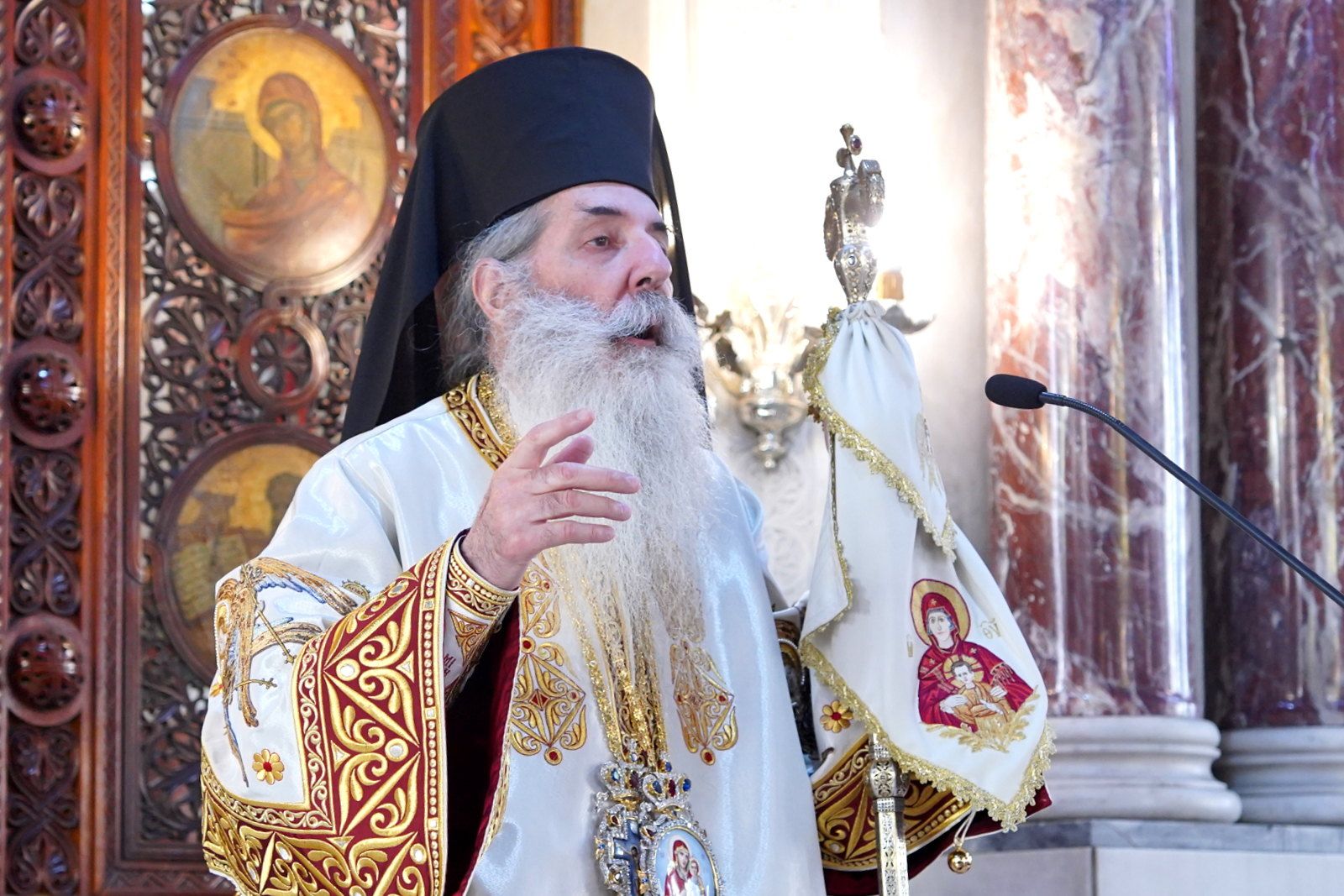 Ἐκάλεσε δέ ὃλους νά ἀκολουθοῦν, νά ἀκολουθοῦμε στά βήματα τοῦ Ἁγίου καί νά διατηροῦμε στή ζωή μας τά ἱερά διδάγματα καί τήν διδασκαλία του, τήν παρακαταθήκη πού κατέλιπε σέ μας.