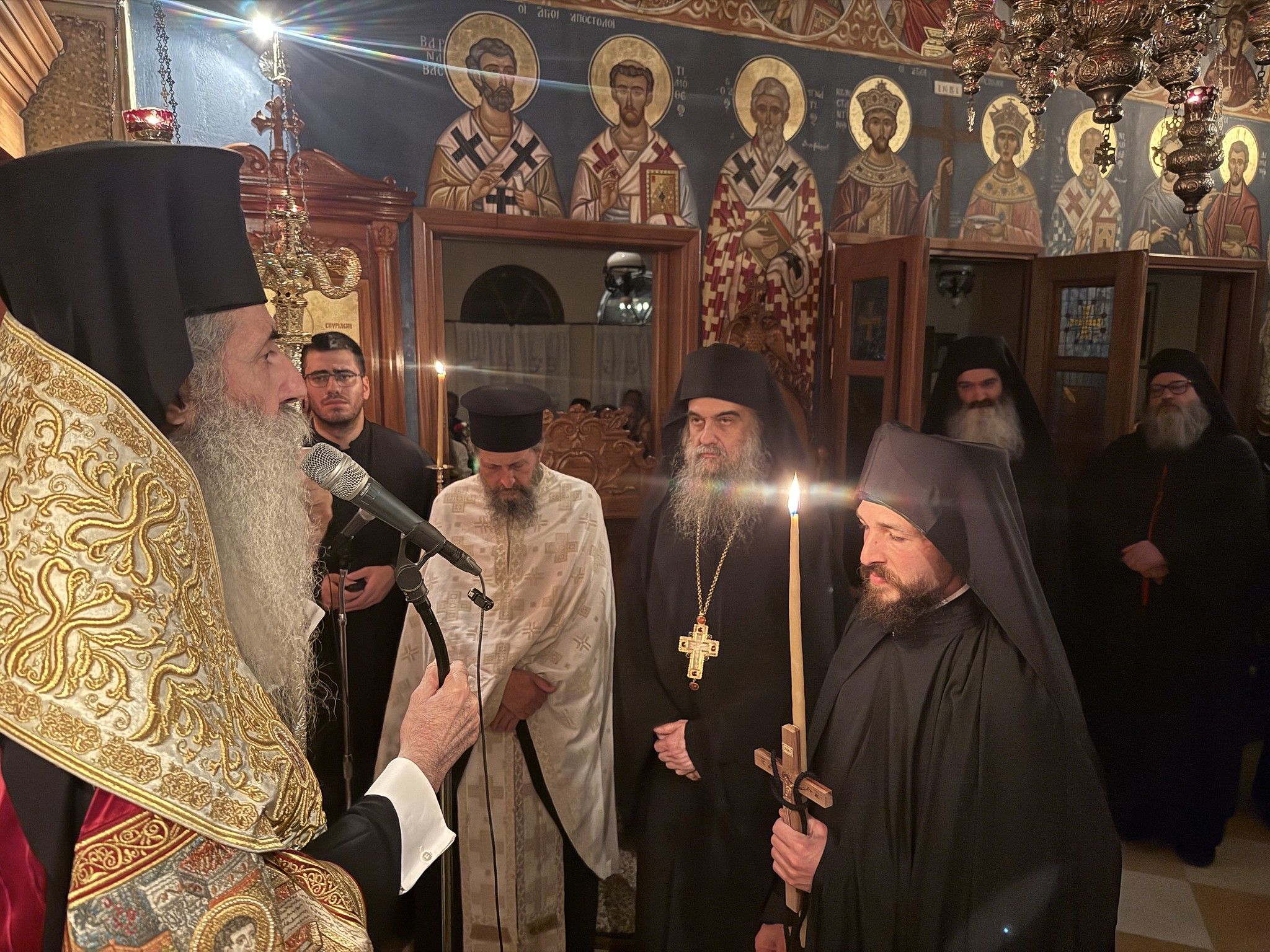 «Ζήσαμε απόψε την έκχυση των δωρεών του Παναγίου Πνεύματος. Ζήσαμε απόψε ένα θαύμα! Ζήσαμε απόψε μία έκφραση της Βασιλείας του Κυρίου της Δόξης. Ζήσαμε απόψε μία ανάκραση, μία μετοχή, μία κοινωνία του ακτίστου Θεού με τον κτιστό άνθρωπο», είπε αρχικά απευθυνόμενος προς όλους, κατά τη σύντομη προσλαλιά του, ο Σεβασμιώτατος Μητροπολίτης Πειραιώς κ. Σεραφείμ, συμπληρώνοντας πως «απολαύσαμε το πλήρωμα της Χάριτος δια του Αγίου και Μεγάλου Αγγελικού Σχήματος που ανατρέπει κάθε δαιμονικό περίπαιγμα, κάθε κοσμοείδωλο της απάτης του φθειρομένου κόσμου μας».