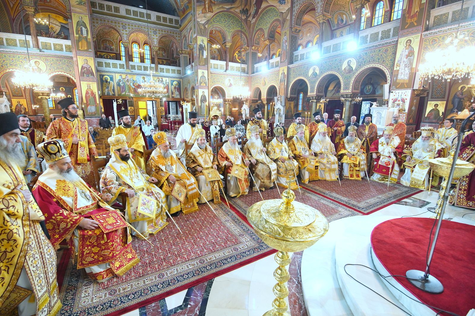 Στον Καθεδρικό Ιερό Ναό Αγίας Τριάδος Πειραιώς το πρωί εψάλη η Ακολουθία του Όρθρου, χοροστατούντος του Σεβασμιωτάτου Μητροπολίτου Μεσσηνίας κ. Χρυσοστόμου και στην συνέχεια τελέστηκε πολυαρχιερατικό συλλείτουργο προεξάρχοντος του Σεβασμιωτάτου Μητροπολίτου Νικαίας κ. Αλεξίου και συνιερουργούντων των Σεβασμιωτάτων Μητροπολιτών Χαλκίδος κ. Χρυσοστόμου, Μεσσηνίας κ. Χρυσοστόμου, Νέας Ιωνίας και Φιλαδελφείας κ. Γαβριήλ, Γλυφάδας κ. Αντωνίου, Τρίκκης, Γαρδικίου και Πύλης κ. Χρυσοστόμου, των Θεοφιλεστάτων Επισκόπων Χριστιανουπόλεως κ. Προκοπίου, Ευρίπου κ. Χρυσοστόμου, Επιδαύρου κ. Νικοδήμου, Ταλαντίου κ. Θεολόγου, Αχελώου κ. Νήφωνος και του εορτάζοντος Μητροπολίτου Πειραιώς κ. Σεραφείμ.