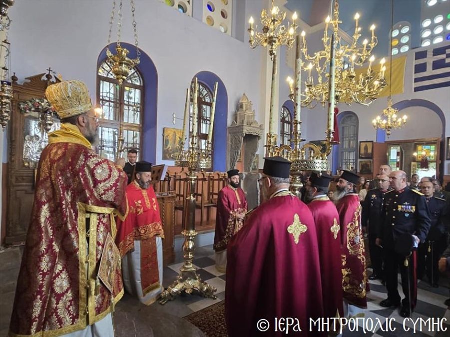 Ἐκτός τοῦ πολυπληθοῦς ἐκκλησιάσματος, στήν Θ. Λειτουργία συμμετεῖχε ὁ Δήμαρχος Σύμης κ. Ἐλευθέριος Παπακαλοδούκας, ὁ Ἀντιδήμαρχος κ. Νικήτας Γρύλλης καί πολυμελής στρατιωτική ἀντιπροσωπεία μέ ἐπικεφαλῆς τόν Διοικητῆ τῆς Δ.Α.Ν. Σύμης Συνταγματάρχη κ. Γεώργιο Ζιώγα, οἱ ὁποῖοι παρέστησαν καί στήν τελεσθεῖσα ἐν συνεχείᾳ ἐπίσημη Δοξολογία τῆς σημερινῆς ἑορτῆς τῶν Ἐνόπλων Δυνάμεων. Σημειώνεται ὅτι κάθε χρόνο κατά τήν Ἑορτή τῶν Εἰσοδίων τῆς Θεοτόκου, ἑορτάζεται ἡ ἡμέρα τῶν Ἐνόπλων Δυνάμεων μὲ πρωτοβουλία τῆς Ἑλληνικῆς Πολιτείας γιὰ νὰ ὑπομνησθεῖ καὶ νὰ τιμηθεῖ ἔτσι ἡ προσφορὰ τῶν Ἑλληνικῶν Ἐνόπλων Δυνάμεων πρὸς τὸ Ἔθνος, τόσον σὲ περίοδο πολέμων, ὅσον καὶ στὴν εἰρήνη.