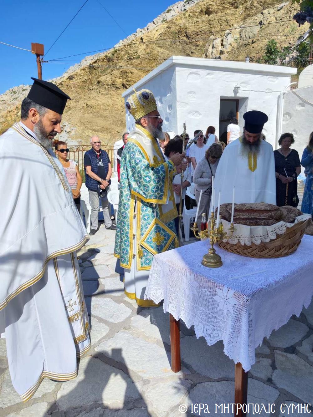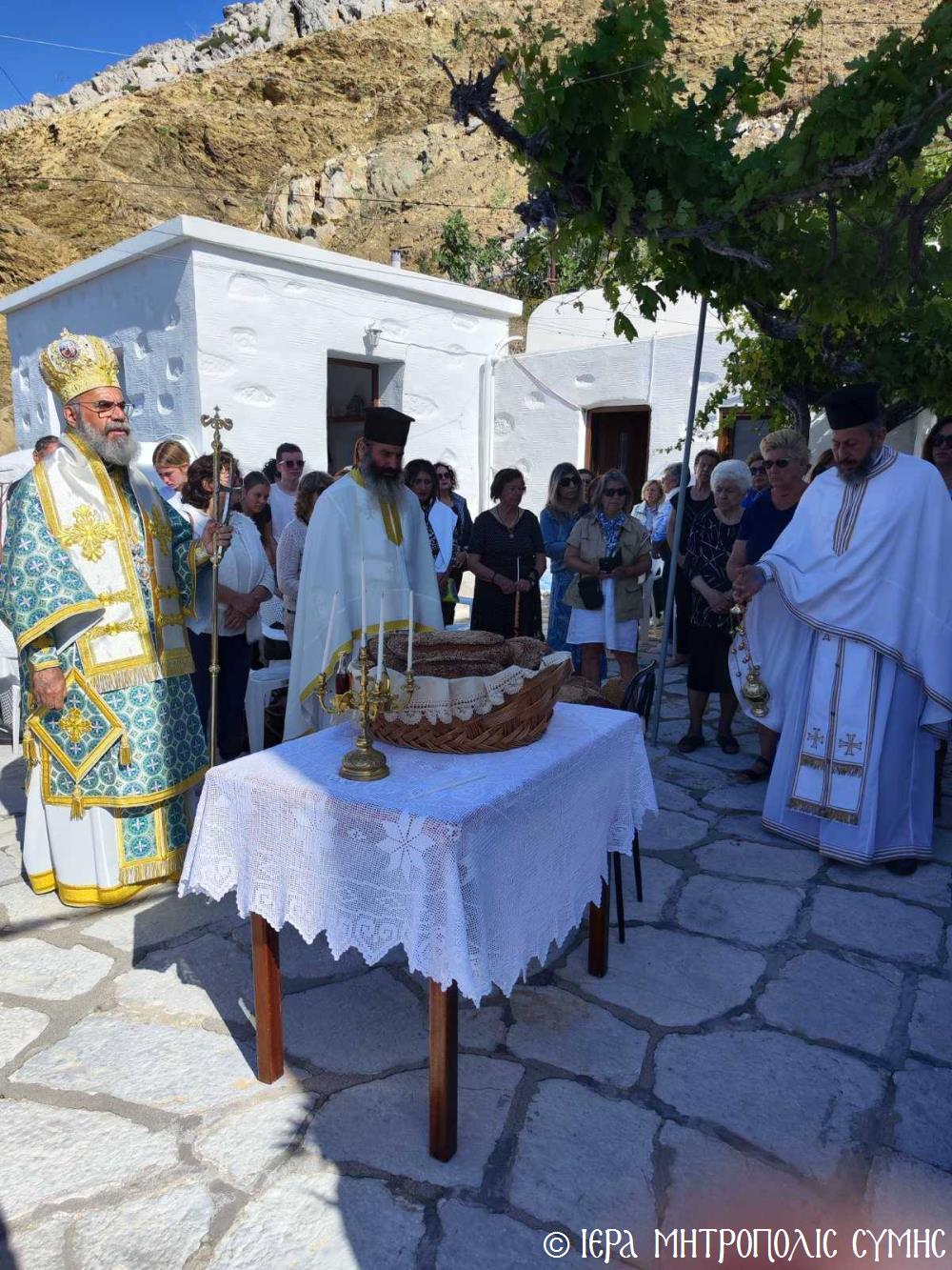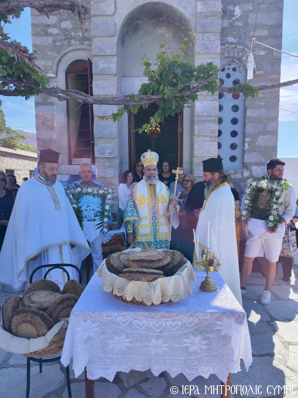 Ὁ Σεβασμιώτατος, ὁ ὁποῖος κήρυξε καί τόν θεῖο λόγο ἀναλύων τά ὑψηλά νοήματα τῆς Ἑορτῆς, μετά τήν Θ. Λειτουργία προέστη τῆς Λιτανείας τῆς ἱ. Εἰκόνος καί ἐν συνεχείᾳ εὐλόγησε τούς προσφερομένους Ἄρτους. Μετά τό πέρας, ἡ φιλόξενη Ἐπιτροπή τοῦ Ἱ. Ναοῦ προσέφερε καφέ καί τά καθιερωμένα ἑόρτια κεράσματα στούς συμμετέχοντες πιστούς, ὥστε ἡ πνευματική χαρά νά διοχετευθεῖ καί στήν διαπροσωπική ἐπαφή καί ἐπι-κοινωνία τῶν ἀνθρώπων.