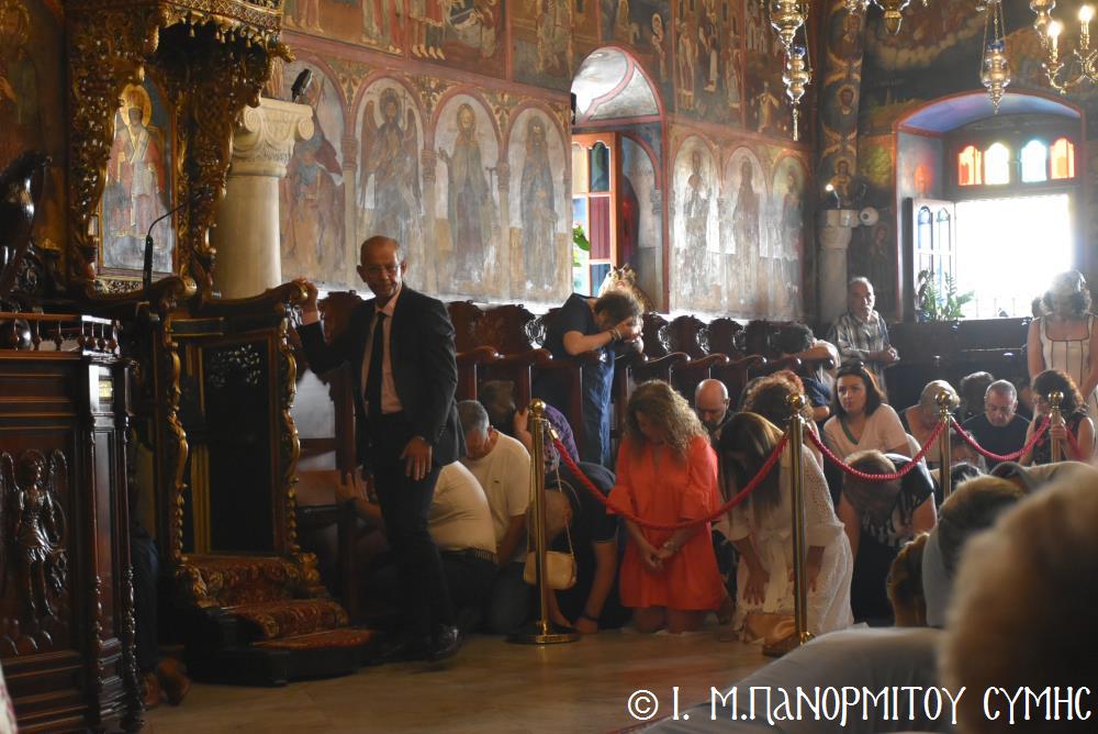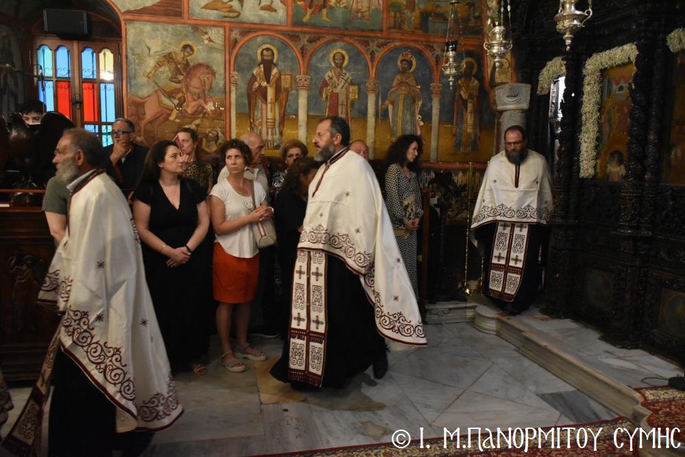 Μετά τήν ἀπόλυσιν, εὐθύς ἀμέσως ἐτελέσθη ὁ Ἑσπερινός τοῦ Ἁγίου Πνεύματος, κατά τήν διάρκειαν τοῦ ὁποίου ὁ Σεβ. Μητροπολίτης μας κ. Χρυσόστομος, ἀνέπεμψε τίς κατανυκτικές εὐχές τῆς Γονυκλισίας. Ἐκκλησιάστηκαν ὁ Δήμαρχος Σύμης κ. Ἐλευθ. Παπακαλοδούκας, ὁ Διοικητής ΔΑΝ Σύμης Σχης κ. Χαράλαμπος Κατηφόρης, ἐνῶ τούς χώρους τῆς Μονῆς κατέκλυσαν πλῆθος προσκυνητῶν ἀπό τήν Σύμη καί πολλοί ἄλλοι πού ἔφθασαν μέ τά ἡμερόπλοια ἀπό τήν Ρόδο, τήν Κῶ, ἀλλά καί ἄλλα μέρη τῆς Πατρίδος μας.