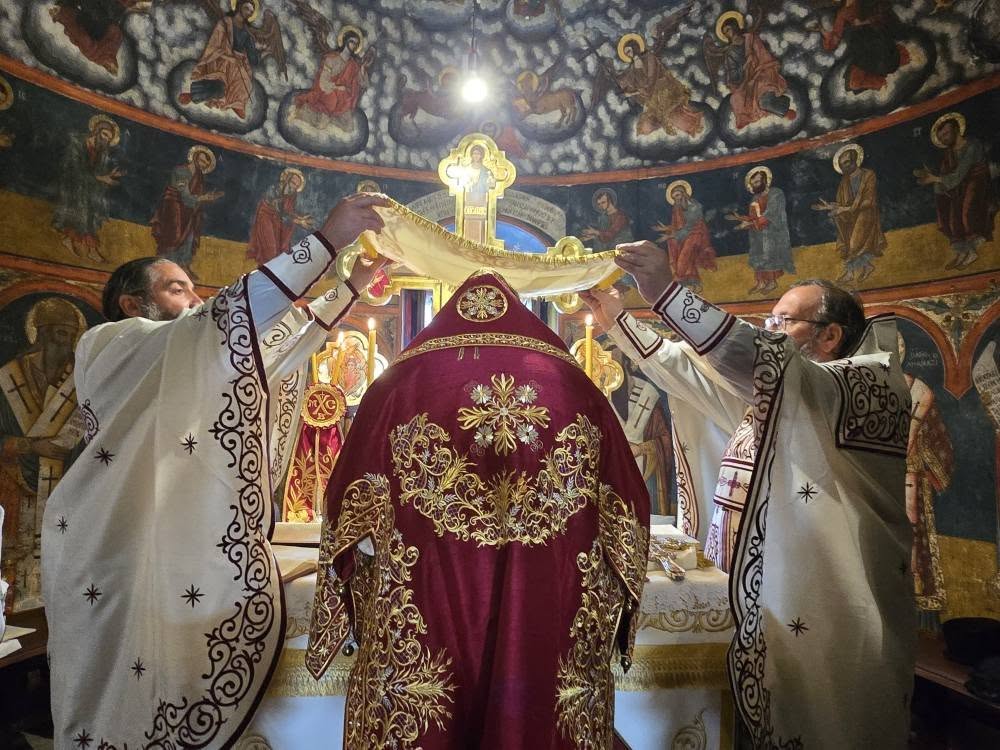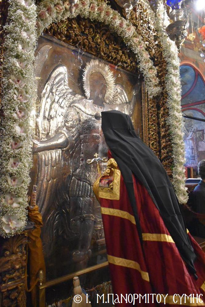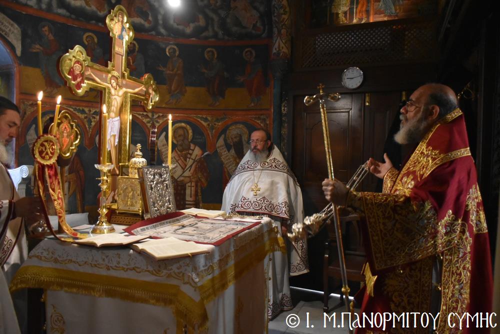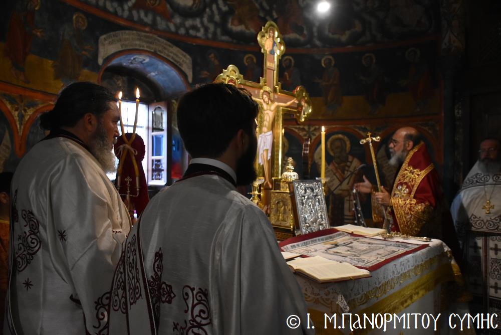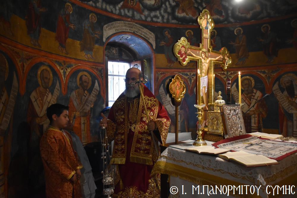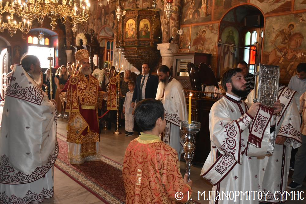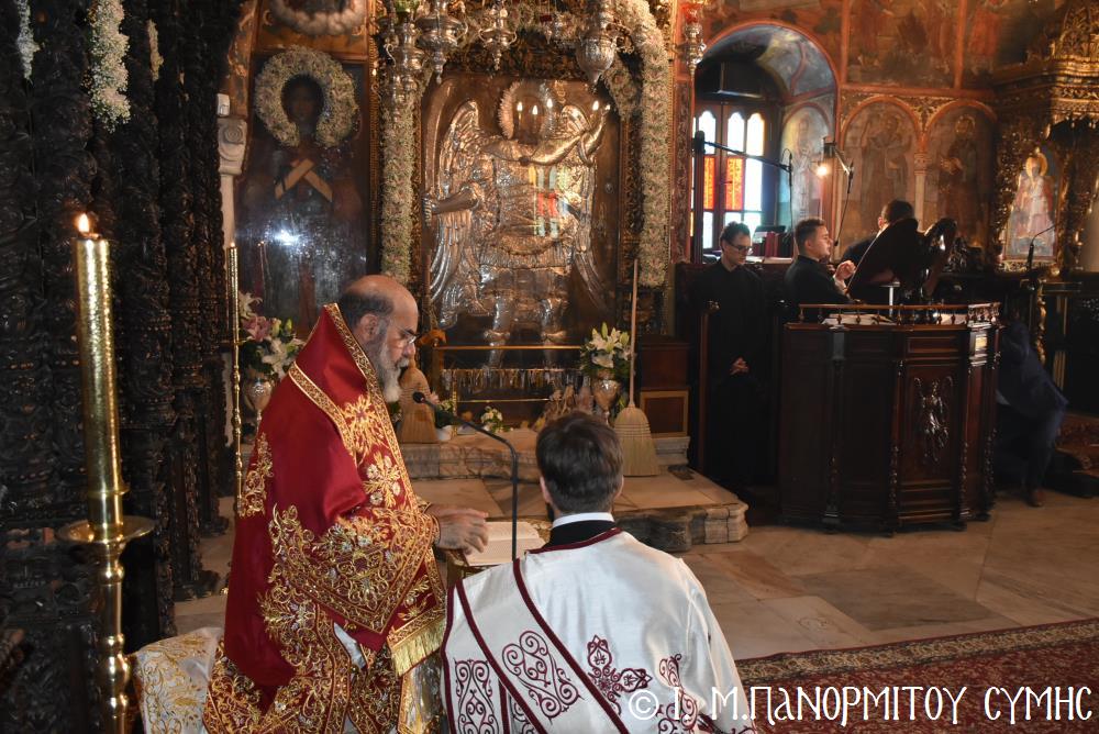 Τό πρωΐ τῆς Κυριακῆς πραγματοποιήθηκε ἡ ἔναρξις τοῦ Ὄρθρου χοροστατοῦντος τοῦ Σεβασμιωτάτου Μητροπολίτου μας κ. Χρυσοστόμου καί ἀκολούθησε ἡ τέλεσις τῆς πανηγυρικῆς Θείας Λειτουργίας ἐξ αὐτοῦ, συλλειτουργούντων τοῦ Πανοσ. Καθηγουμένου Ἀρχιμανδρίτου π. Ἀντωνίου Πατροῦ, τοῦ Αἰδεσιμ. π. Γεωργίου Κακακιοῦ καί τῶν Διακόνων μας π. Παύλου Τερεζάκη καί π. Νικολάου Καρμανιώλου, ἐνῶ τό ἱ. ἀναλόγιο διακόνησαν οἱ Ἱεροψάλτες κ. Ἐλευθέριος Ξηράκης καί κ. Εὐάγγελος Λαγός.