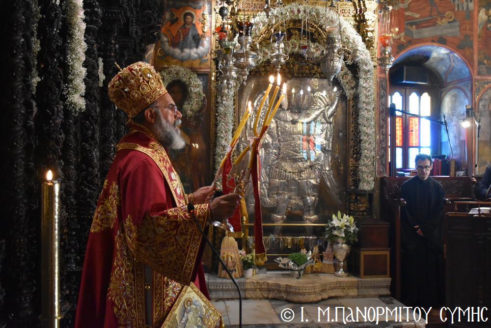 Μέ μεγαλοπρέπεια καί μεγάλη κοσμοσυρροή ἑορτάστηκε καί ἐφέτος στήν Ἱερά Μονή Πανορμίτου τό Σάββατο καί τήν Κυριακή 7η & 8η Ἰουνίου 2025, ἡ μεγάλη Ἑορτή τῆς Ἁγίας Πεντηκοστῆς, ἡ ὁποία ἀποτελεῖ γιά ἐθνικούς λόγους καί τήν δεύτερη Πανήγυρη τῆς Ἱ. Μονῆς. Τό ἑσπέρας τοῦ Σαββάτου καί ὥρα 19:00 ἐτελέσθη ὁ Μέγας Πανηγυρικός Ἑσπερινός, προεξάρχοντος τοῦ Σεβασμιωτάτου Μητροπολίτου μας κ. Χρυσοστόμου, συμπαραστατουμένου ὑπό τοῦ Πανοσ. Ἡγουμένου Ἀρχιμανδρίτου π. Ἀντωνίου Πατροῦ, τοῦ Γενικοῦ Ἀρχιερατικοῦ Ἐπιτρόπου Αἰδεσ. π. Στεφάνου Μακρῆ καί τῶν Ἐφημερίων καί Διακόνων τῆς Νήσου μας. Τήν ἱερά ὑμνωδία μελώδησαν οἱ Ἱεροψάλτες κ. Ἐλευθέριος Ξηράκης, κ. Εὐάγγελος Λαγός, κ. Ἀγαπητός Μιχελλής καί κ. Πανορμίτης Κακακιός.