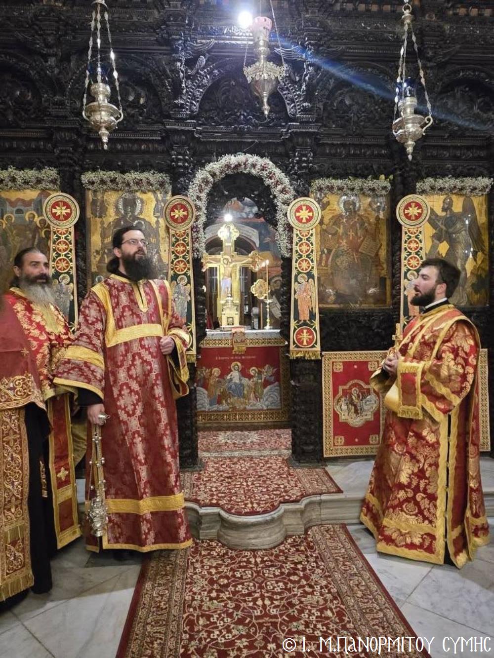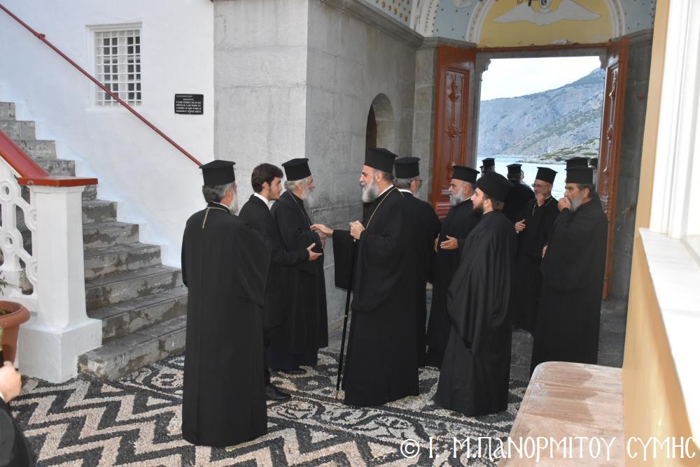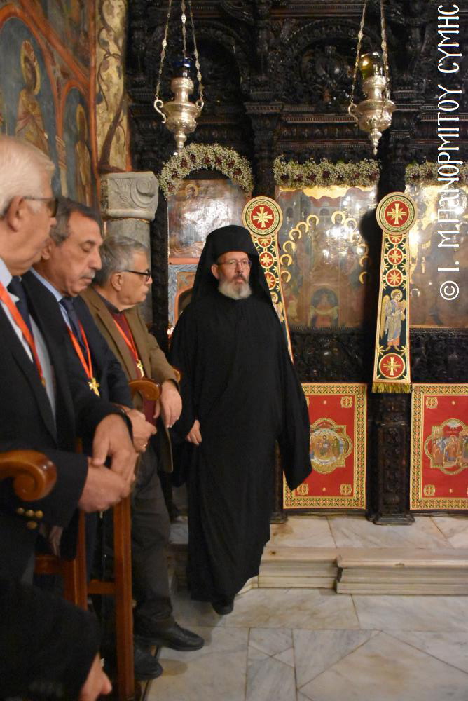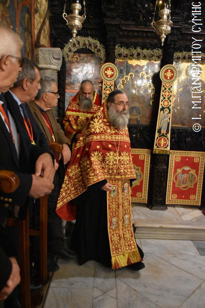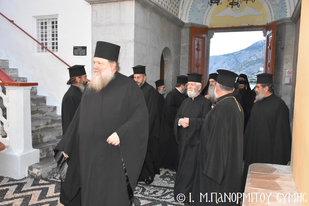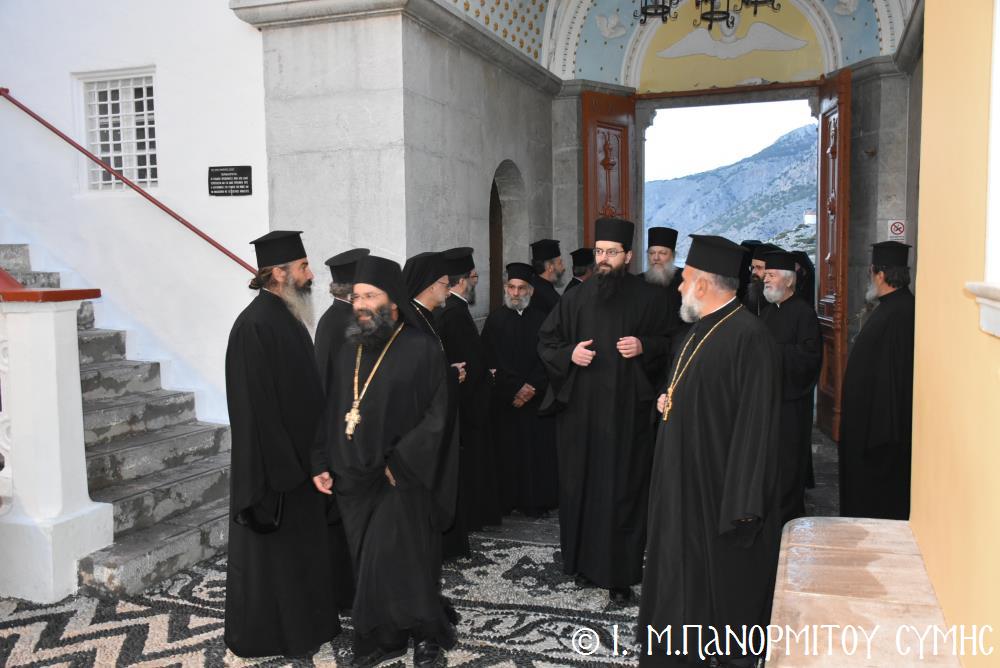 Συλλειτούργησαν ἐπίσης, ἐξ Ἁγίου Ὄρους, ὁ Καθηγούμενος τῆς Ἱερᾶς Μονῆς τῶν Ἰβήρων Ἀρχιμ. π. Ναθαναήλ καί ὁ Ἱερομόναχος Γέρων Νεκτάριος Λαυριώτης, ἐπίσης ὁ Πανοσιολ. Ἀρχιμανδρίτης τοῦ Οἰκουμενικοῦ Θρόνου π. Νικόδημος Σκλέπας, ἡμέτερος ἐν Μεγίστῃ Ἀρχιερατικός Ἐπίτροπος καί ὁ Αἰδεσιμολ. Πρωτοπρεσβύτερος τοῦ Οἰκουμενικοῦ Θρόνου π. Ἐλευθέριος Χρυσοχόος, Γραμματεύς τῆς ἐν Ἀθήναις Ἐκπροσωπήσεως τοῦ Οἰκουμενικοῦ ἡμῶν Πατριαρχείου καί ἐκπρόσωπος τῆς Πατριαρχικῆς Ἐξαρχίας Πάτμου, μετά τῶν Ἱεροδιακόνων π. Ἀμβροσίου, π. Θεοτόκη καί π. Παύλου. Ἡ εὐθύνη τῆς Τάξεως τοῦ Τελετουργικοῦ ἀνετέθη εἰς τόν Ἱερομόναχον Χρυσόστομον, Γέροντα τοῦ ἐν Ἁγίῳ Ὄρει Ἱεροῦ Κελλίου Ἁγίου Ἰωάννου τοῦ Χρυσοστόμου, τά δέ ἱερά ἀναλόγια διηκόνησαν γλυκυφθόγγως χορός Συμαίων Ἱεροψαλτῶν, ὑπό τήν διεύθυνσιν τοῦ Πρωτοψάλτου τοῦ Ἱ. Μητροπολιτικοῦ Ναοῦ κ. Δημοσθένους Γιανναρᾶ, ἐνῶ ἡ συμμετοχή τῶν πιστῶν ὑπῆρξε πάνδημος καί ἐνθουσιώδης. Παρέστησαν συμπροσευχόμενοι, ὁ π. Φιλόθεος καί ὁ π. Χριστόδουλος ἐκ τῆς Ἱ. Μονῆς Κουτλουμουσίου, ὁ Γεν. Ἀρχιερατικός Ἐπίτροπος τῆς Ἱ. Μητροπόλεως Πρωτοπρ. π. Στέφανος Μακρῆς, ὁ Οἰκονόμος π. Σάββας Πατέρας Ἀρχιερατικός Ἐπίτροπος Χάλκης καί ἅπαντες οἱ Ἐφημέριοι τῆς Νήσου μας, μετά τῶν λοιπῶν ἐπισκεπτῶν Ἱερέων, ὡς καί ἡ Ὁσιωτ. ἡγουμένη τῆς Ἱ. Μονῆς Παναγίας Ὑψενῆς Ρόδου Ἀδελφή Μαριάμ.