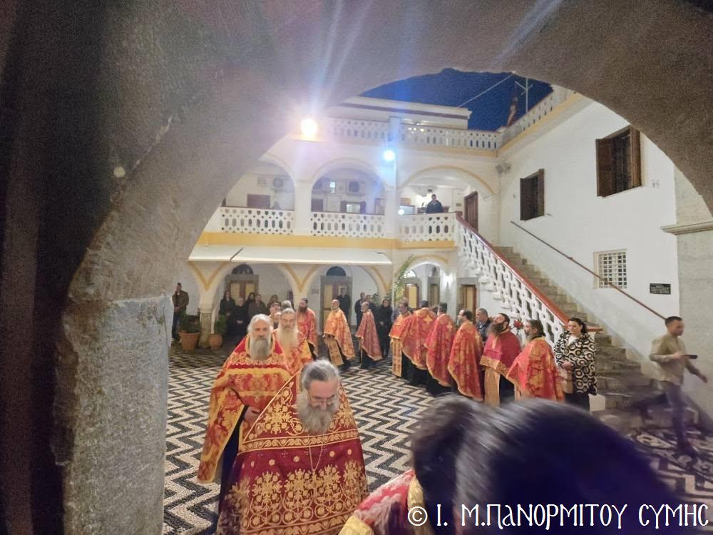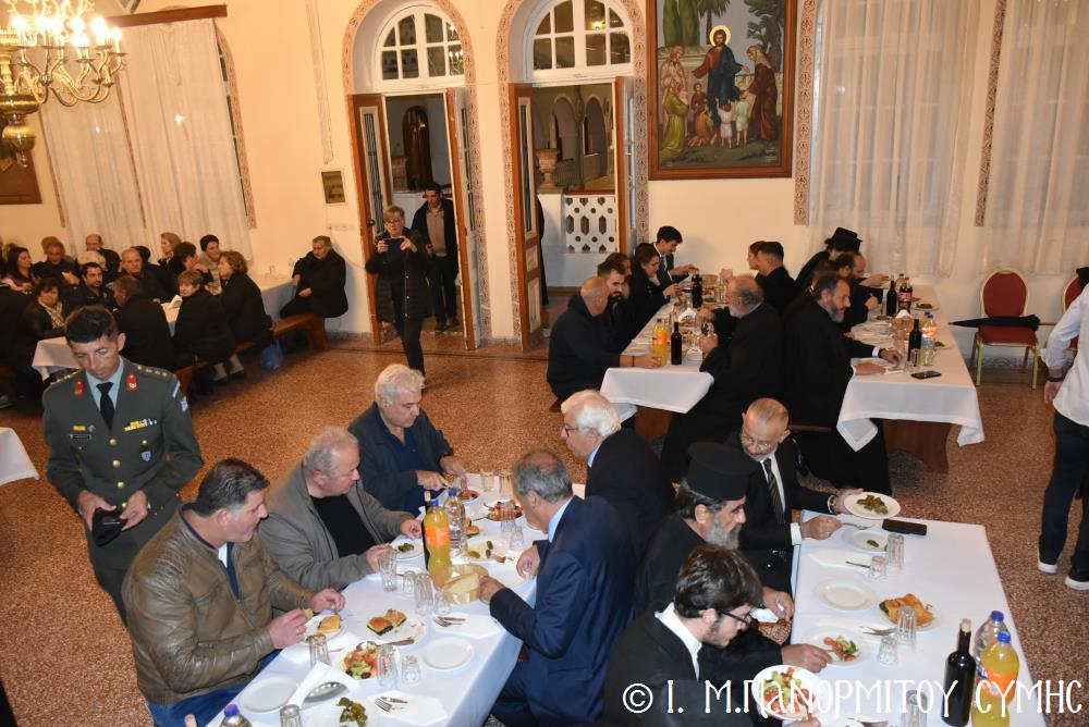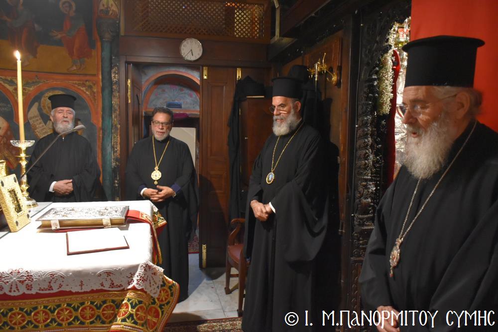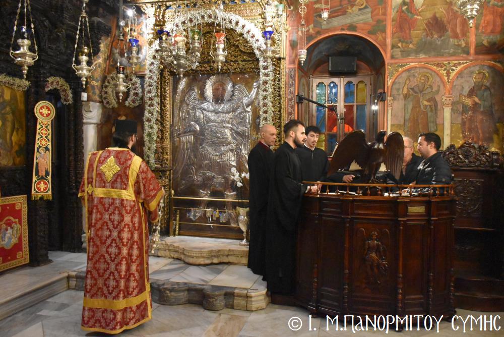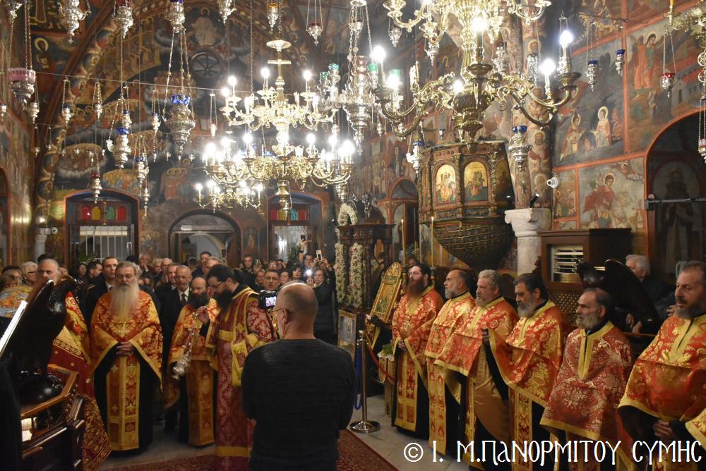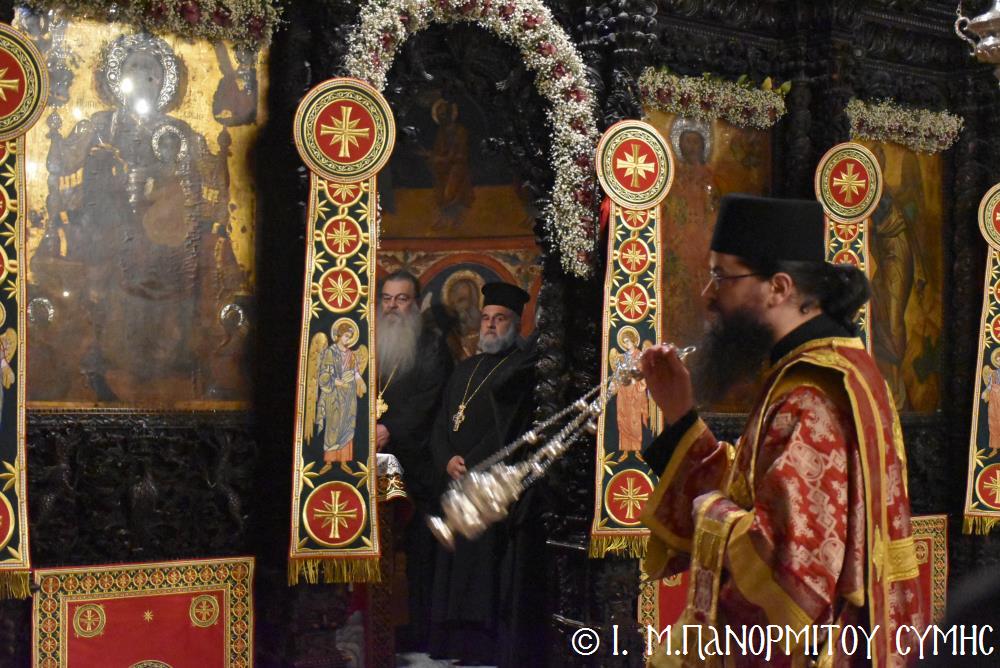 Τό ἑσπέρας τοῦ Σαββάτου καί ὥρα 17:00, ἐτελέσθη στήν Ἱ. Μονή Πανορμίτου, ὁ Μέγας πανηγυρικός Ἑσπερινός, χοροστατοῦντος τοῦ Σεβ. Μητροπολίτου Παραμυθίας, Φιλιατῶν, Γηρομερίου καί Πάργης κ. Σεραπίωνος. Ἐν συνεχείᾳ προσφέρθηκαν στό πολυπληθές ἐκκλησίασμα τά κεράσματα καί παρετέθη ἑόρτια Τράπεζα, στήν ὁποία παρεκάθισαν οἱ προσκεκλημένοι Ἀρχιερεῖς καί ἅπαντες οἱ παριστάμενοι Κληρικοί καί Λαϊκοί.