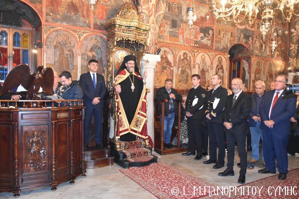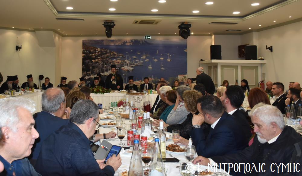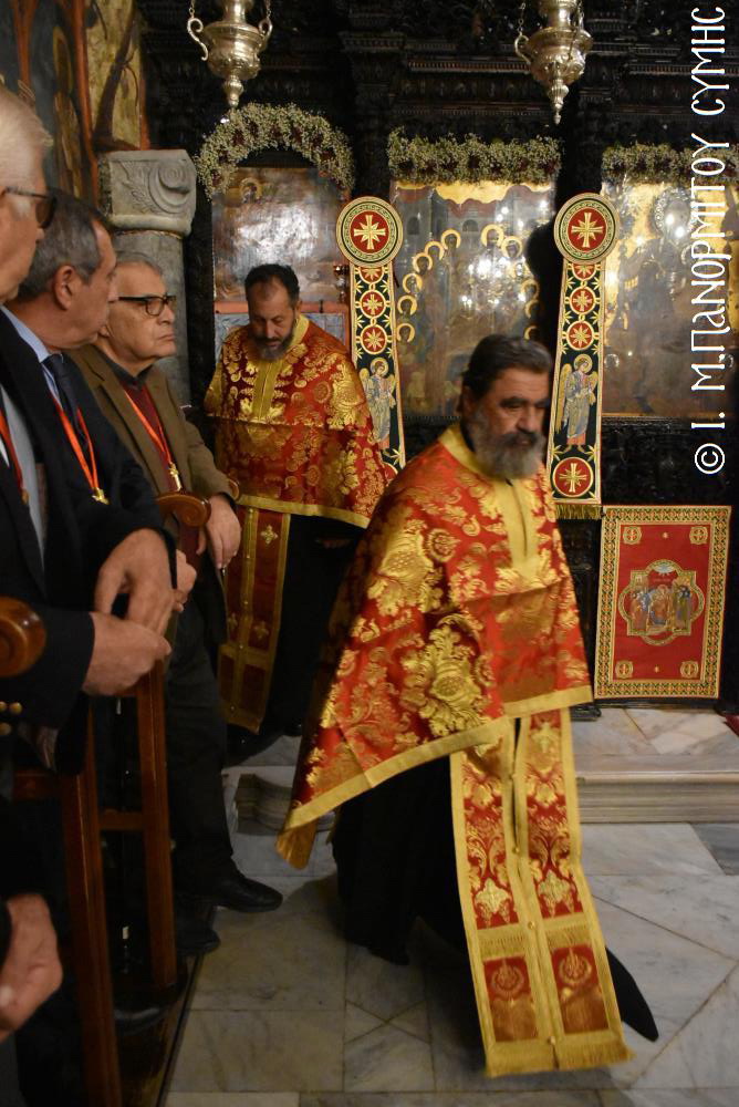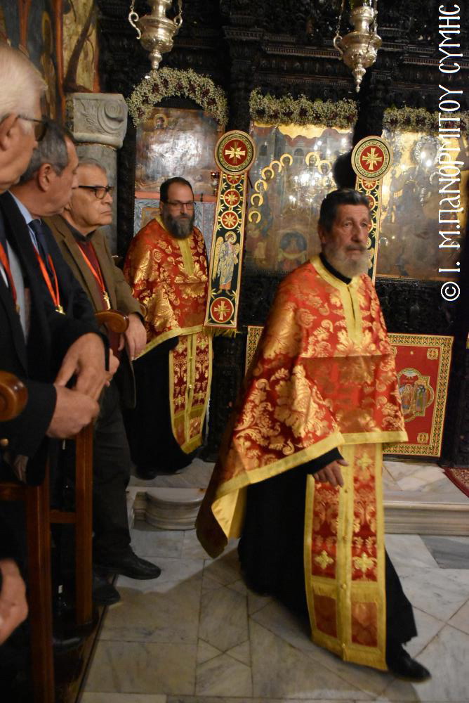 Μεταξύ τοῦ πυκνοῦ ἐκκλησιάσματος, ἦταν ὁ Δήμαρχος, Σύμης κ. Ἐλευθέριος Παπακαλοδούκας Ἀντιδήμαρχοι μετά Μελῶν τοῦ Δημοτικοῦ Συμβουλίιου, ὁ Ἀρχηγός ΓΕΕΘΑ, Στρατηγός κ. Δημήτριος Χούπης, οἱ Ὀφφικιάλιοι τοῦ Οἰκουμενικοῦ Πατριαρχείου καί συνεργάτες τῆς καθ’ καθ’ ἡμᾶς Ἱερᾶς Μητροπόλεως κ. Θεόδωρος Παπαγεωργίου, Ἄρχων Δικαιοφύλαξ καί κ. Θεοδόσιος Κολιάδης, Ἄρχων Μαΐστωρ, ὡς καί ὁ κ. Ἀθανάσιος Στάμος, Ἄρχων Λαοσυνάκτης καί ὁ κ. Ἀθανάσιος Ταβούκτσογλου, Ἄρχων Ρεφενδάριος ἐξ Ἀμερικῆς. Ἐπίσης συμμετεῖχαν ὁ Στρατιωτικός Διοικητής Δ.Α.Ν. Σύμης Συνταγματάρχης κ. Χαράλαμπος Κατηφόρης, ὁ Διοικητής τοῦ 549 Τ.Ε. Σύμης Ἀντισυνταγματάρχης κ. Εὐάγγελος Καρσιώτης, ὁ Ἀστυνομικός Διοικητής Σύμης κ. Δημοσθένης Κοτσιλάρας, ὁ Ὑπολιμενάρχης Σύμης Πλωτάρχης κ. Παράσχος Τσαγκαρέλλης, Ἐκπρόσωποι τῆς ΕΔΟΚ Σύμης, ἡ Πρόεδρος τῆς Ἑνώσεως Γυναικῶν Σύμης κ. Σεβαστή Νικόλη καί ἄλλοι ἐκπρόσωποι τοπικῶν Φορέων καί Συλλόγων, ὡς τῶν Συμαίων τῶν Ἀθηνῶν, τῆς Ρόδου καί τῆς Ἐλευσίνος, καθώς καί Ἐκπρόσωποι Συλλόγων τῶν Χαλκιτῶν Ρόδου καί Ἀθηνῶν. Ἰδιαίτερη δέ ἐντύπωση προκάλεσε ἡ παρουσία κοριτσιῶν τῆς Σύμης καί τῆς Χάλκης, ντυμένα μέ τίς παραδοσιακές ἐνδυμασίες τῶν δύο αὐτῶν νησιῶν μας, πού ἀπηχοῦν τήν μεγάλη ἀπήχηση τοῦ ἐκκλησιαστικοῦ αὐτοῦ γεγονότος στήν συνείδηση τῶν εὐσεβῶν Χριστιανῶν μας.