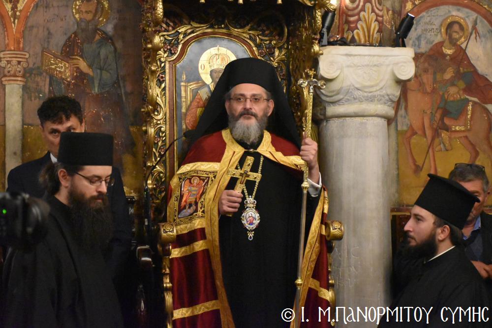 Ἀπό τῆς 26ης Ἀπριλίου 2018 ἐνετάγη τῇ αἰτήσει του εἰς τόν εὐαγῆ Κλῆρον τῆς Ἱερᾶς Μητροπόλεως Σύμης ἀναγραφείς εἰς τό Μοναχολόγιον τῆς Ἱερᾶς Μονῆς Ταξιάρχου Μιχαήλ τοῦ Πανορμίτου καί εὐμενεῖ προκρίσει τοῦ οἰκείου Ποιμενάρχου ἡμῶν, Σεβ. Μητροπολίτου Σύμης κ. Χρυσοστόμου Β΄, ἐδιορίσθη Τοποτηρητής τῆς Ἡγουμενίας αὐτῆς. Ἐν συνεχείᾳ, τήν 8ην Δεκεμβρίου 2018 ὑπό τοῦ ὡς ἄνω Μητροπολίτου ἡμῶν ἐνθρονίσθη Κανονικός αὐτῆς Ἡγούμενος, ἐκ τοῦ ὁποίου καί τοῦ ἀπενεμήθη, Σεπτῇ Πατριαρχικῇ ἐντολῇ τοῦ Οἰκουμενικοῦ ἡμῶν Πατριάρχου κ. κ. Βαρθολομαίου, τό ὀφφίκιον τοῦ Ἀρχιμανδρίτου τοῦ Οἰκουμενικοῦ Θρόνου.