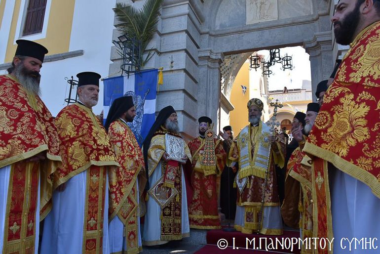 Μέ ἰδιαιτέρα λαμπρότητα καί σεμνή ἱεροπρέπεια κορυφώθηκαν σήμερα οἱ λατρευτικές ἐκδηλώσεις τῆς Πανηγύρεως τῆς Ἱερᾶς Μονῆς Ταξιάρχου Μιχαήλ τοῦ Πανορμίτου, ἐδῶ στήν ἀγγελοσκέπαστη Σύμη, ὅπου ἑορτάσθη ἡ Σύναξις τῶν Παμμεγίστων Ταξιαρχῶν Μιχαὴλ καὶ Γαβριὴλ καὶ πασῶν τῶν ἐπουρανίων Δυνάμεων Ἀσωμάτων.